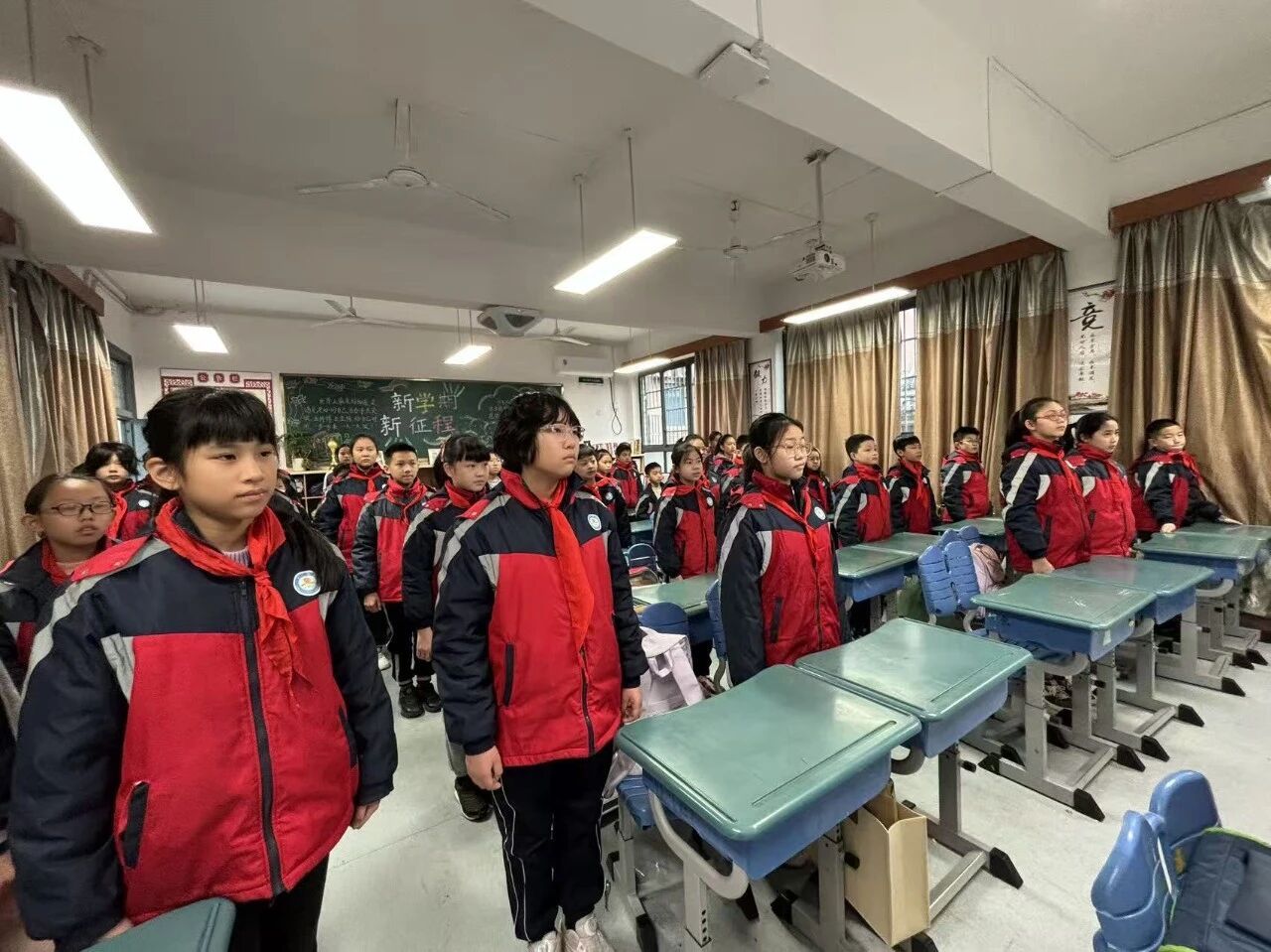 仪式的高潮部分,欧阳吉灏等四位同学共同讲述了《毛主席与附小的故事》。他们回顾了毛泽东同志在附小担任主事期间推行教育革新、传播进步思想、关心工农子弟、倡导劳动教育的办学实践,特别提到毛主席曾写下“世界是我们的,做事要大家来”的楹联,至今仍是我校精神血脉的重要组成部分。1921年,毛泽东同志正是从附小出发,赴上海参加中共一大,从此开启了中国革命的崭新篇章。这段厚重的校史让全体师生深感自豪,更觉责任在肩。