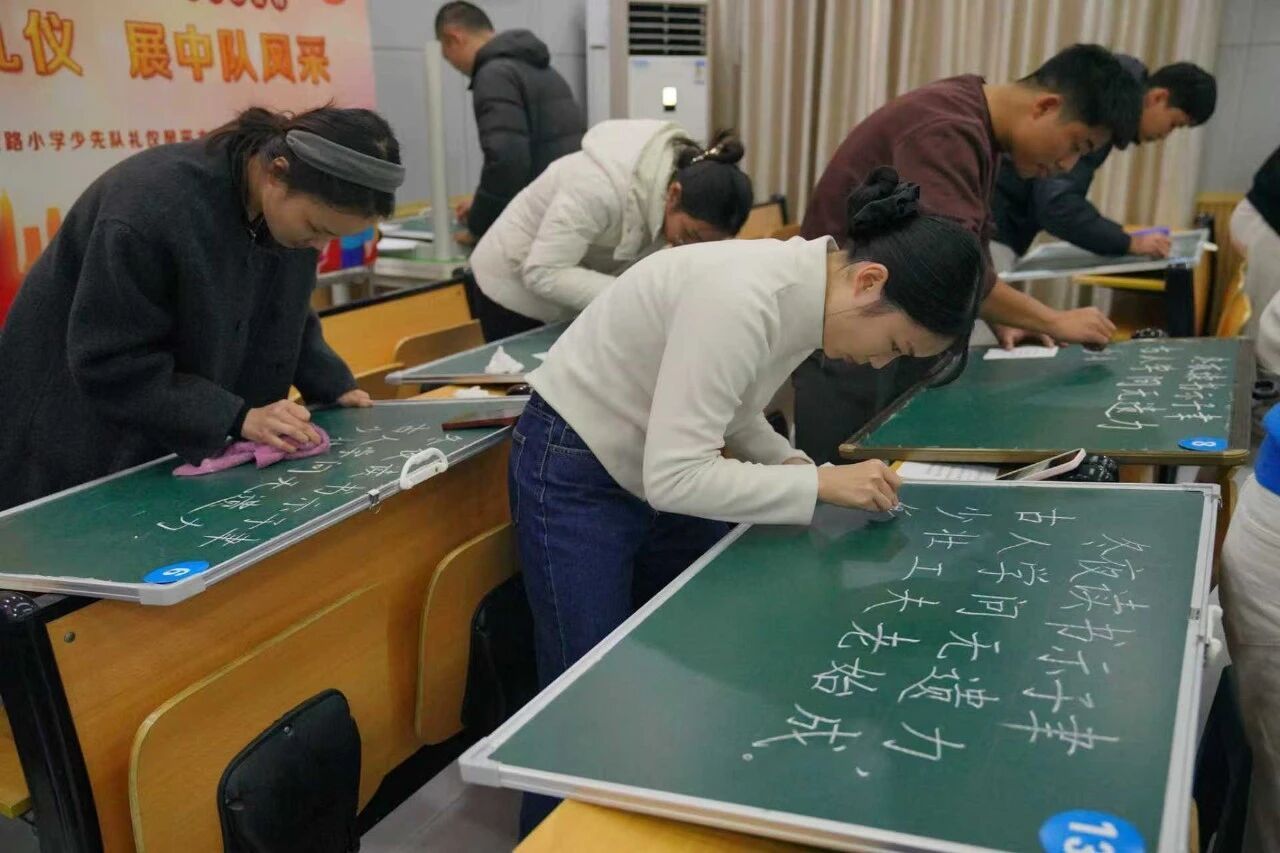 粉笔作笔,黑板为纸,一横一竖皆是风骨,一撇一捺尽显师心。为进一步夯实青年教师教学基本功,提升教师专业能力,12月22日下午,湖南一师二附小成功举办2025年度青年教师粉笔字竞赛。本次活动以“弘扬汉字魅力,展现书写风采”为主题,润之学堂青年教师积极参与其中,以笔为媒,以字传情,在黑板上书写教育匠心。