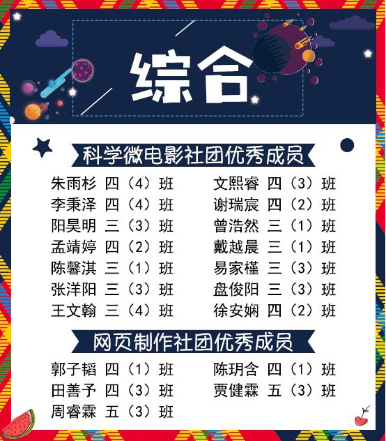社团是学生自我成长、锻炼的平台,更是他们展现自我的舞台。在学校各具特色的社团活动中,学生们提升素养,涵养心灵,为校园文化生活添上了鲜亮的一笔。全期活动中,涌现了一大批遵守纪律、素质过硬的社团成员。经各社团指导老师推荐,学校教导处审定,决定对以下 235 名优秀社团成员予以表彰。