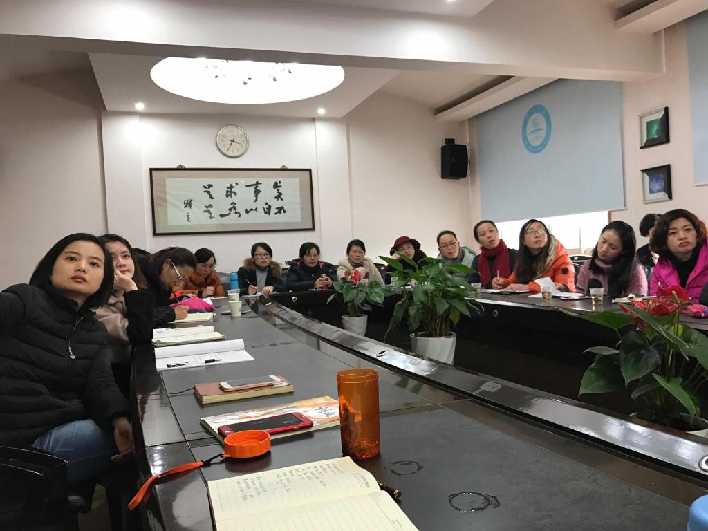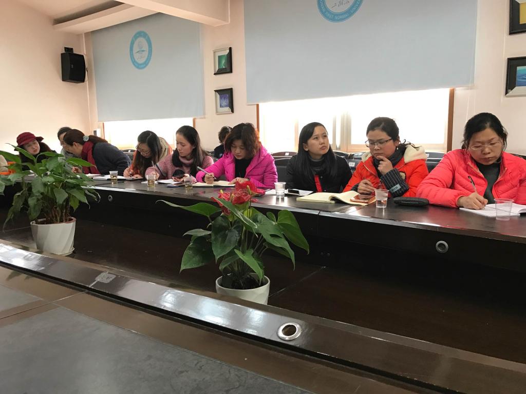 接着,汪校长就语文教学的热点课程与老师们进行探讨,她向老师们介绍了课程改革的最前沿理念,告诫大家要摒弃琐碎费时的文本解析式的课堂教学;鼓励老师们树立课程理念,大胆改革,使语文课堂真正高效提质,提升学生的语文素养。倡议大家牢牢树立一个理念:语文教学是“成人”的教育,语文教学是为学生一生奠基的事业。