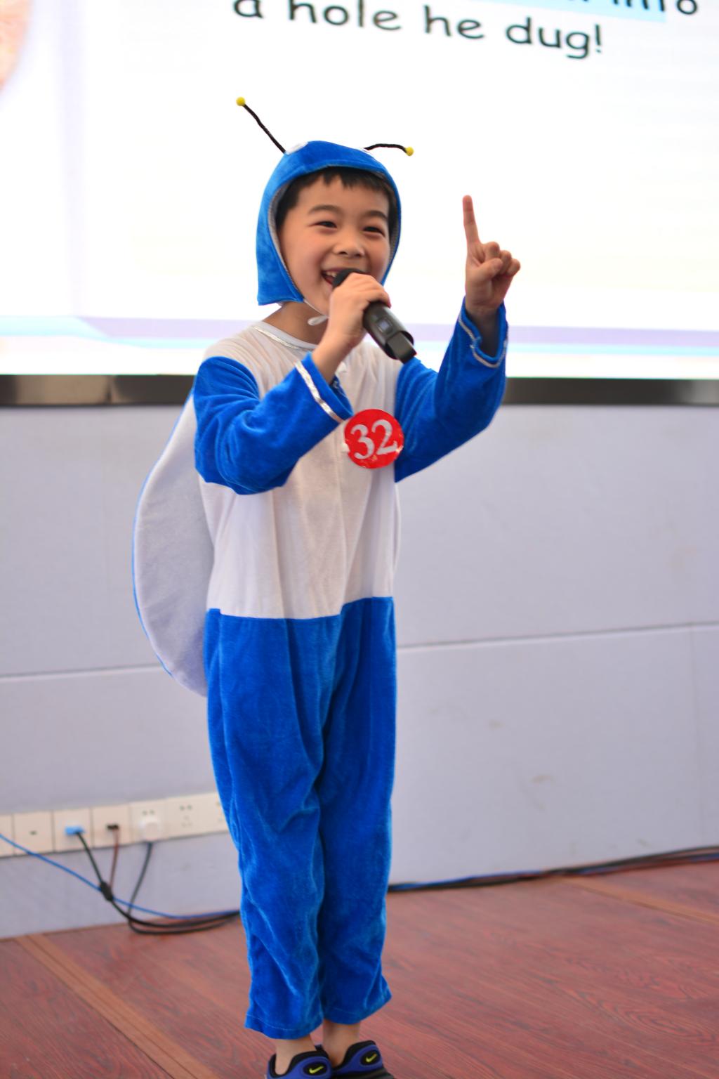 春风宜人的四月,湖南一师二附小一、二年级掀起了一股英语童谣热,孩子们期盼已久的英语童谣大赛决赛拉开了帷幕。随着两位小主持人一口纯正、流利的英文开场白,二年级孩子们的showtime就开始了。赛场上,拿着魔法棒的“Harry Potter”为我们再现与Lord Voldemort决斗;有为我们演唱《Let it go》的“Elsa”和唱跳《Try everything》的“Shakira”;有可爱又浪漫的魔术师为大家送上鲜花和糖果,憨态可掬的样子让大家忍俊不禁;还有具有创意的“superwoman”、可爱的小红帽、活泼的小青蛙、帅气的汽车兄弟……一年级孩子也毫不示弱。听!来自《音乐之声》的Do re mi仿佛让大家置身于音乐王国;可爱的Five little ducks、dinosaur、the little dug满是童真童趣;熟悉的歌曲Edelweiss和let it go 更是让全场师生情不自禁地合唱起来……