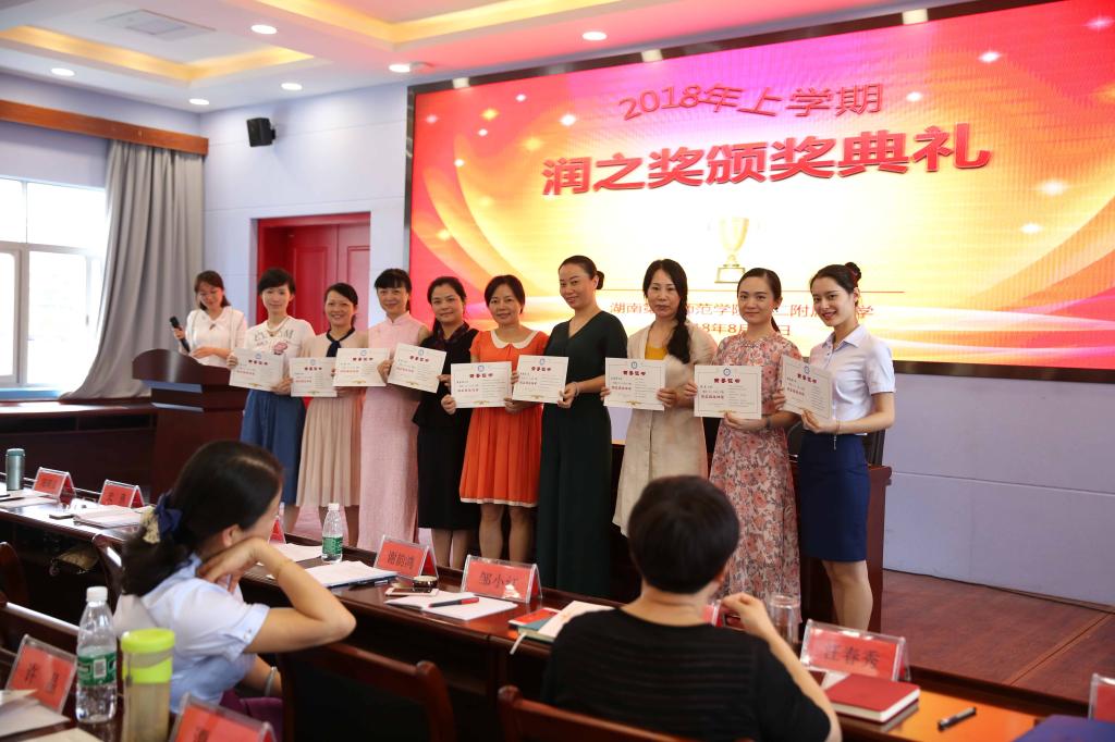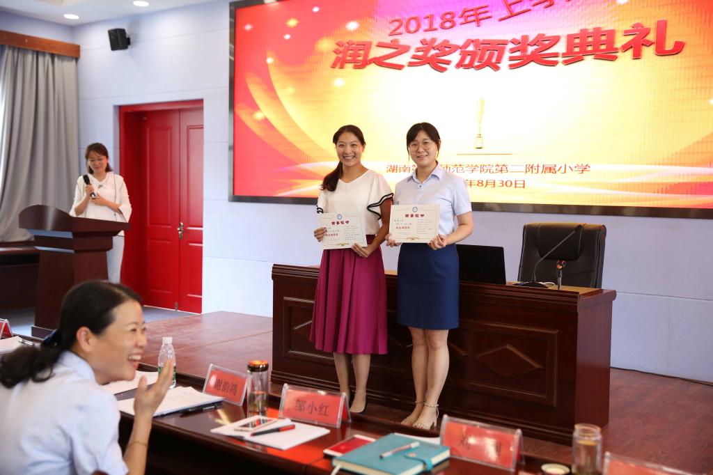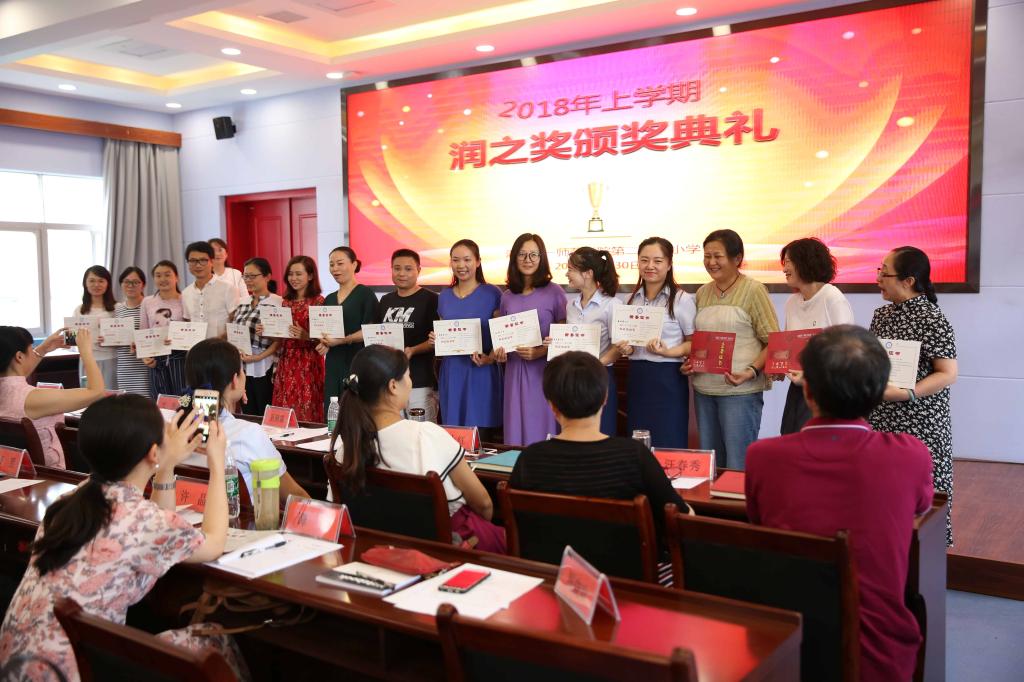 首先,照例进行的是学校2018年下期润之奖颁奖典礼。这次颁发的共有五个奖项:“润之教学常规奖”“润之出勤奖”“润之竞赛奖”“润之辅导奖”和“润之班主任奖”。随着颁奖词的响起,获奖者依次上台,满面笑容地接过奖状,接过属于他们的荣誉,台下祝福的掌声亦是不断。这一份小小的证书、热烈的掌声,是对获奖老师2018年上期一个学期工作的肯定和嘉奖。过去的一个学期里,二附小人一如既往地以勤勉、以智慧、以日复一日的耕耘与劳作镌刻记忆,他们守望初心,最美绽放,朝向更理想的教育,更开阔的远方。这便是润之奖存在的意义。