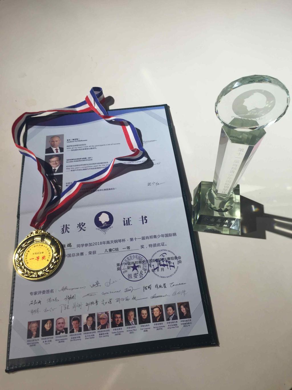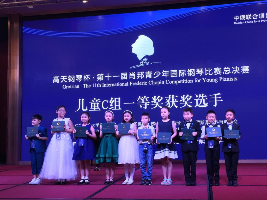 2018年8月13日—15日,我校五(4)班袁湘瑞同学在广东佛山参加了第十一届肖邦青少年国际钢琴总决赛,荣获了儿童C组一等奖。据悉此次有从中国和其他国家胜出的3371名选手参赛,儿童C组总共985位选手参赛,获得一等奖的只有12名选手。