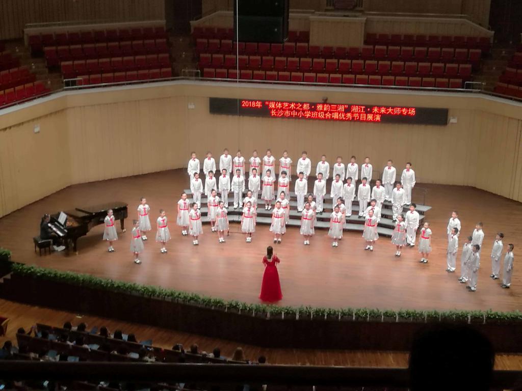 10月22日,长沙市教育局在长沙音乐厅举办了“媒体艺术之都·雅韵三湘”湘江·未来大师系列活动,邀请了2018年长沙市中小学班级合唱比赛中表现优秀的七所小学参加展演,我校六(2)班学生在长沙市中小学班级合唱比赛中荣获一等奖,也是受邀参加演出的合唱队之一!