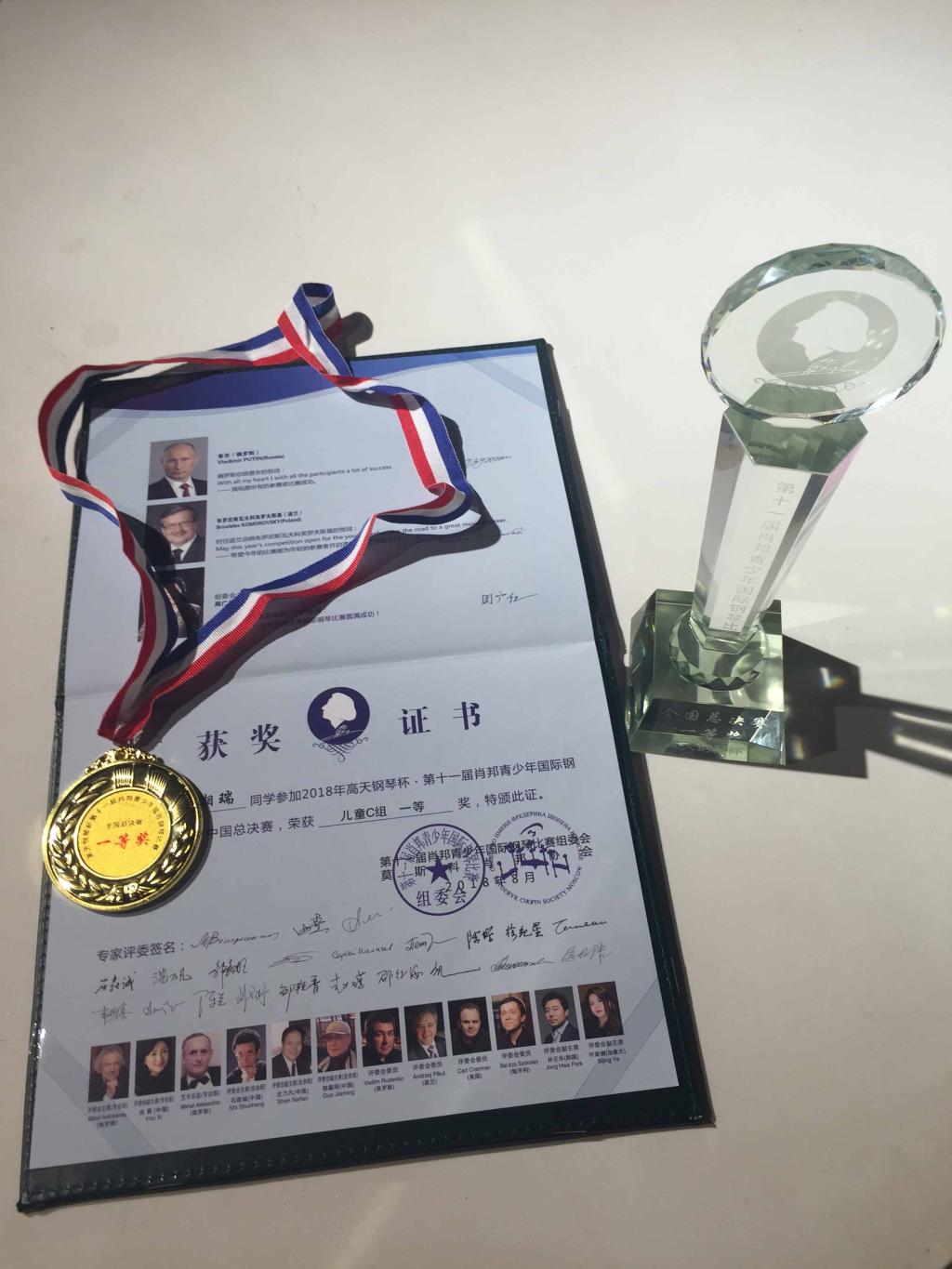 法国大文豪雨果曾说过:“开启人类智慧宝库的钥匙有三把:一把是数学,一把是语言,一把是音乐。”音乐大师贝多芬则说:“音乐是比一切智慧、一切哲学更高的启示。”音乐是世界上最美好的语言,而钢琴最丰富的音乐表现力令我陶醉。除中、英文书籍阅读,我还喜欢阅读一些音乐书籍,坚持学钢琴4年多。并参加了书画课外学习班,作品多次获奖。“琴棋书画,皆得其妙”!