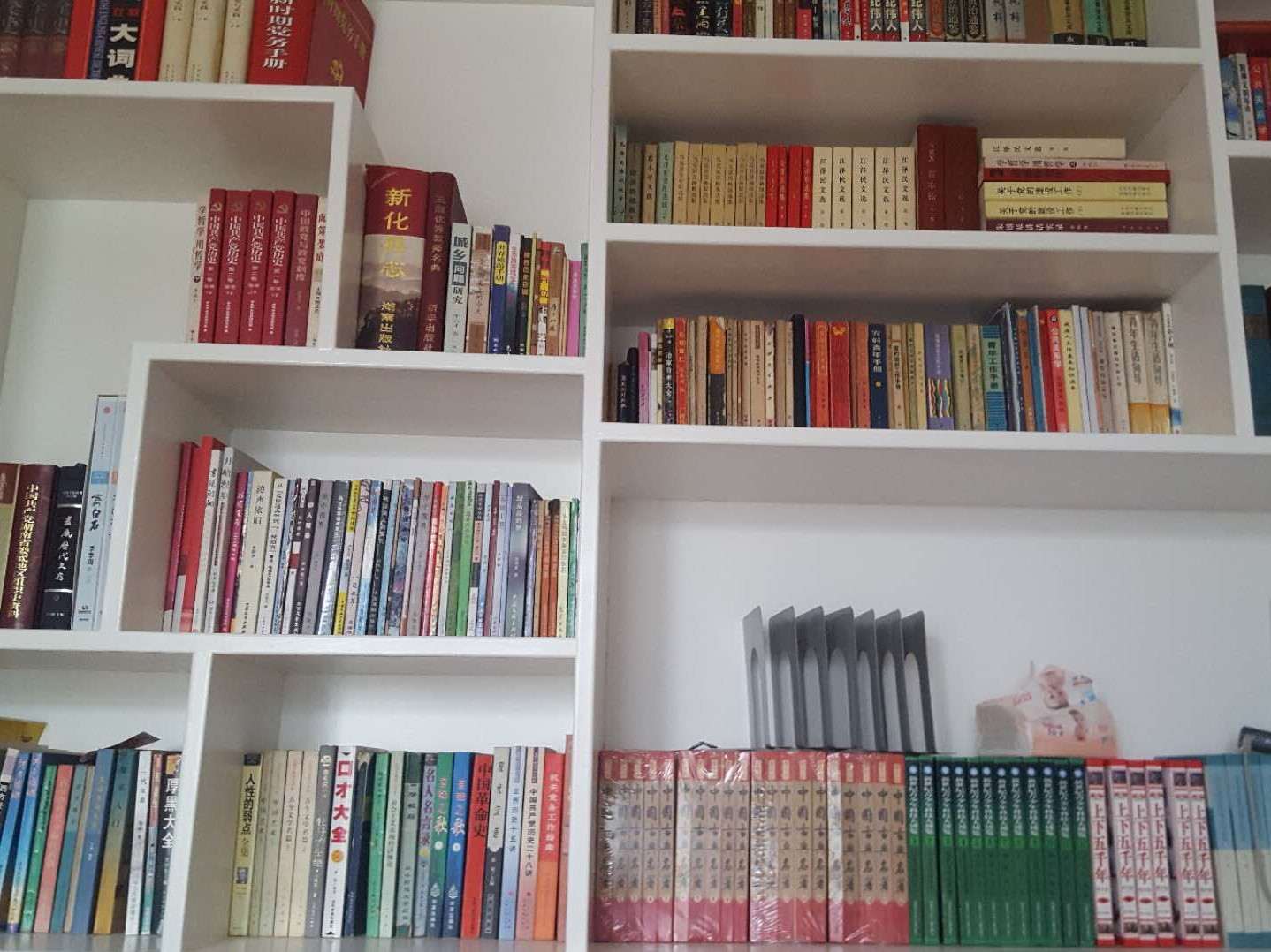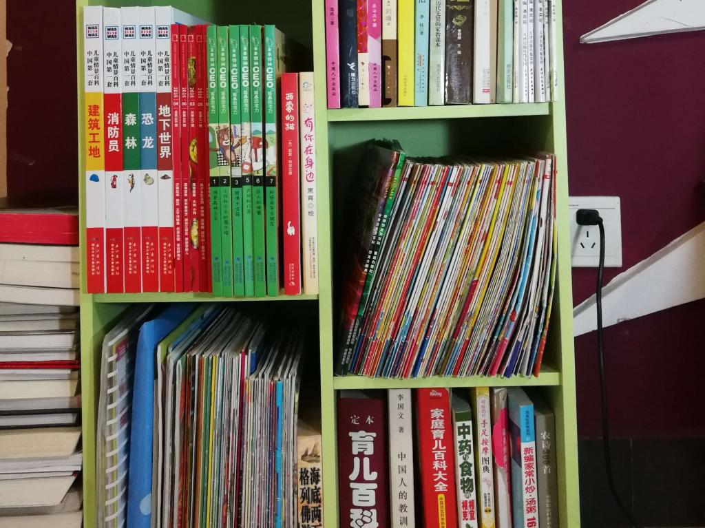 我家既有大书柜、小书柜、也有读书角,在我活动的区域里都有我能随手翻阅的书籍。随着我年龄和阅读能力的增长,爸爸妈妈不断地给我更新书籍,调整我的书柜。现在我的小书柜里放着的是品德性格、天文地理、文学小说、科普百科、历史前沿、数学思维、经典绘本、美术等方面的书,爸爸妈妈还会添置育儿教育类的书籍放在我的书柜里共勉。现在摆放的有:《十万个为什么》《小王子》《我们班的数学秘密日记》《没头脑和不高兴》《幼三国》等等……