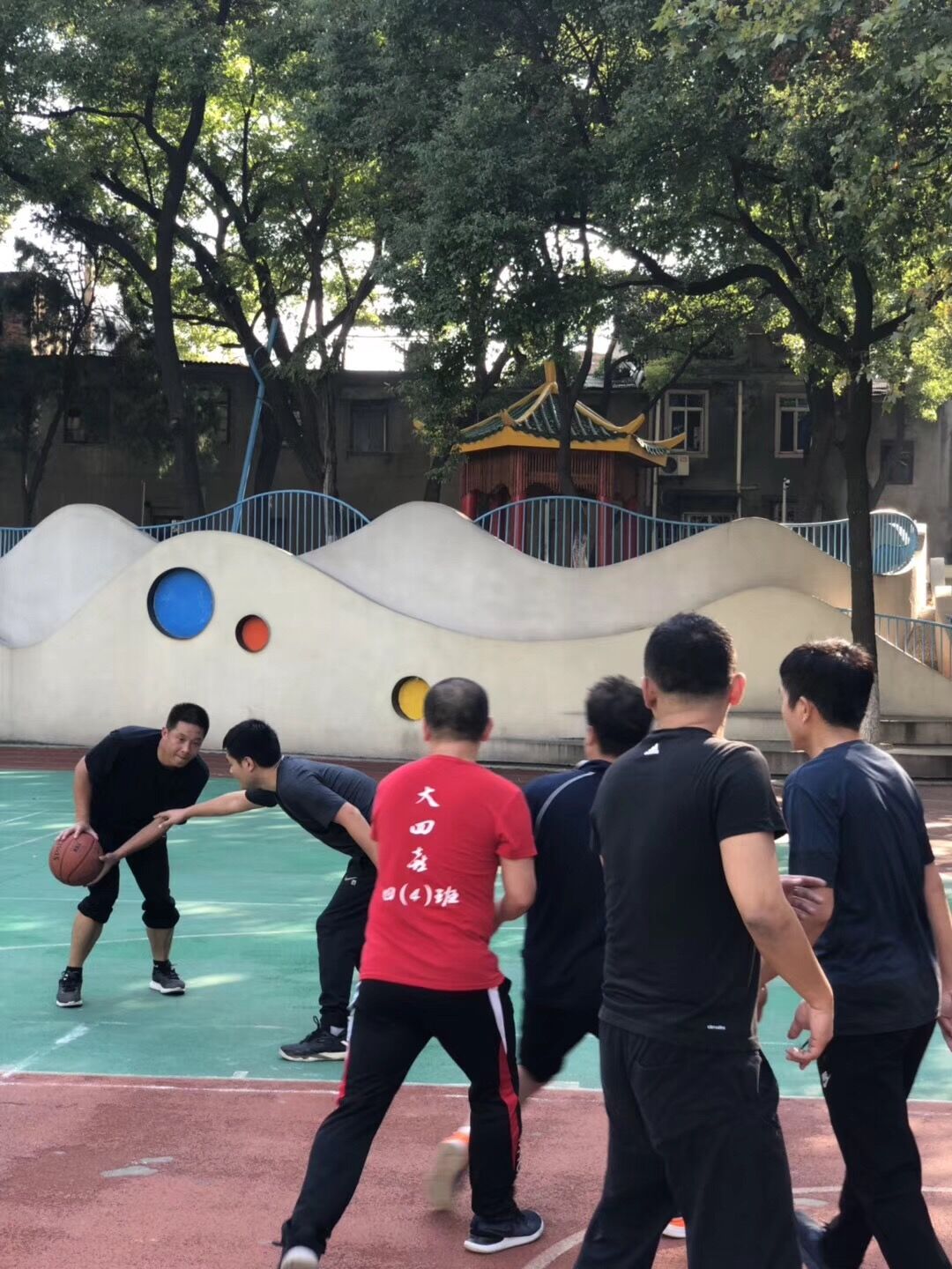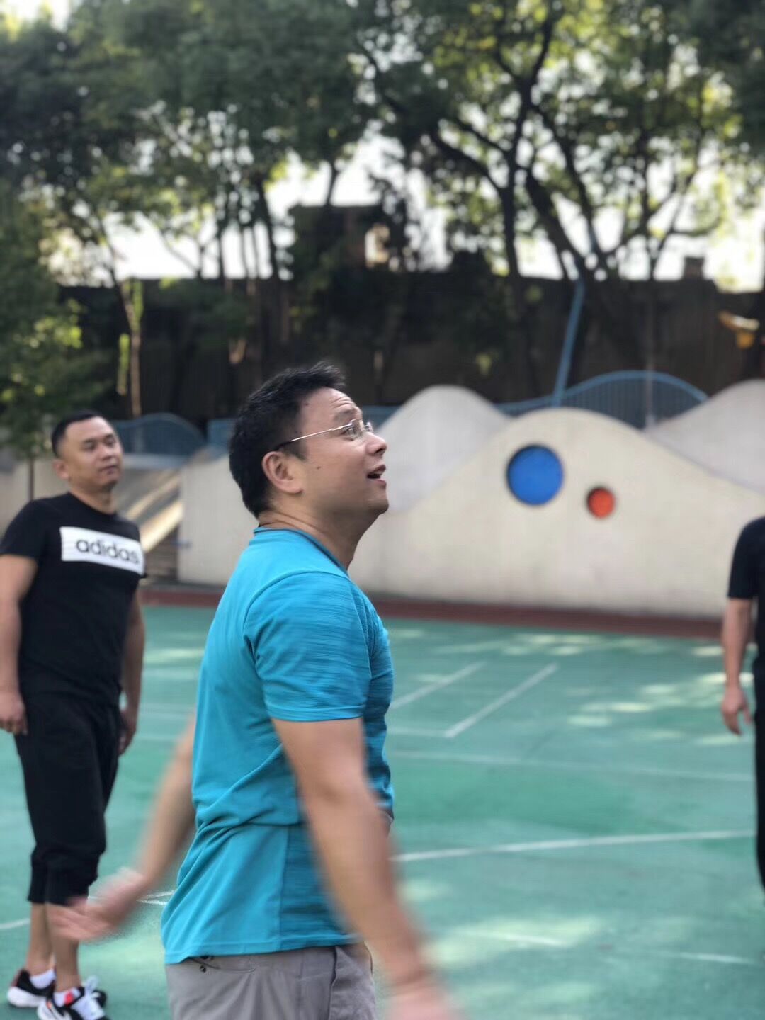 决赛第二场来临前,我们收到了一个非常不利同时令全班担忧的消息,卢军(卢嘉年爸爸)以一(2)班家长身份,在与决赛另外一支队伍比赛中,右脚骨折受伤,不能再参与后续比赛。班级篮球赛家长微信群内,除开队友们的安慰,就是大家互相之间的鼓励,大家默默下定决心,一定要赛出好成绩,不留下遗憾。