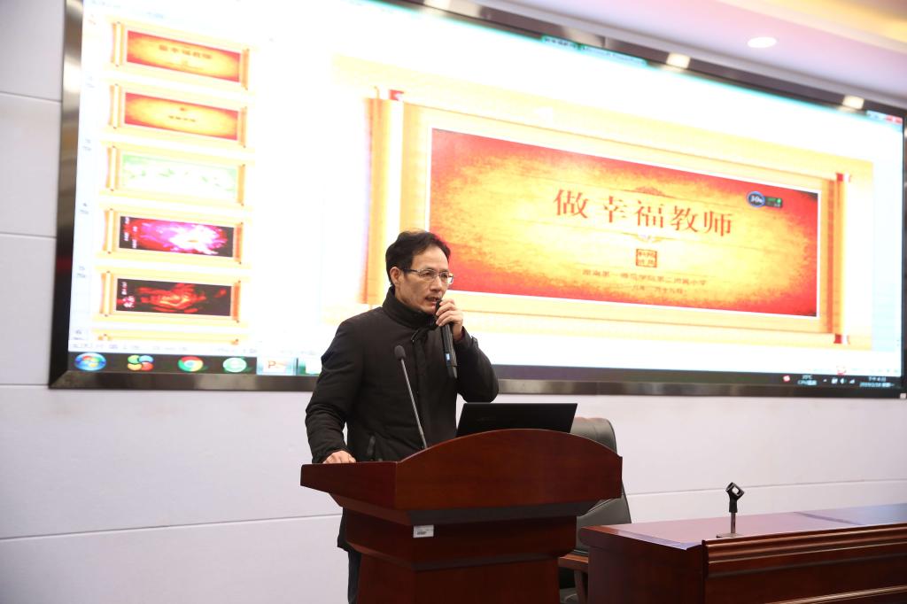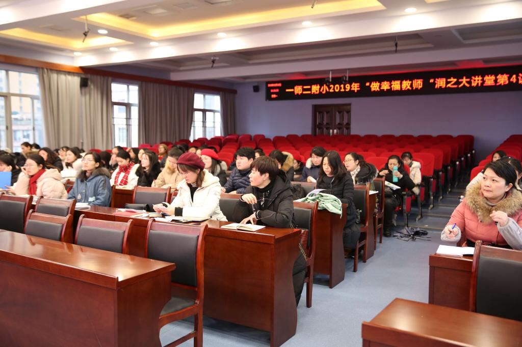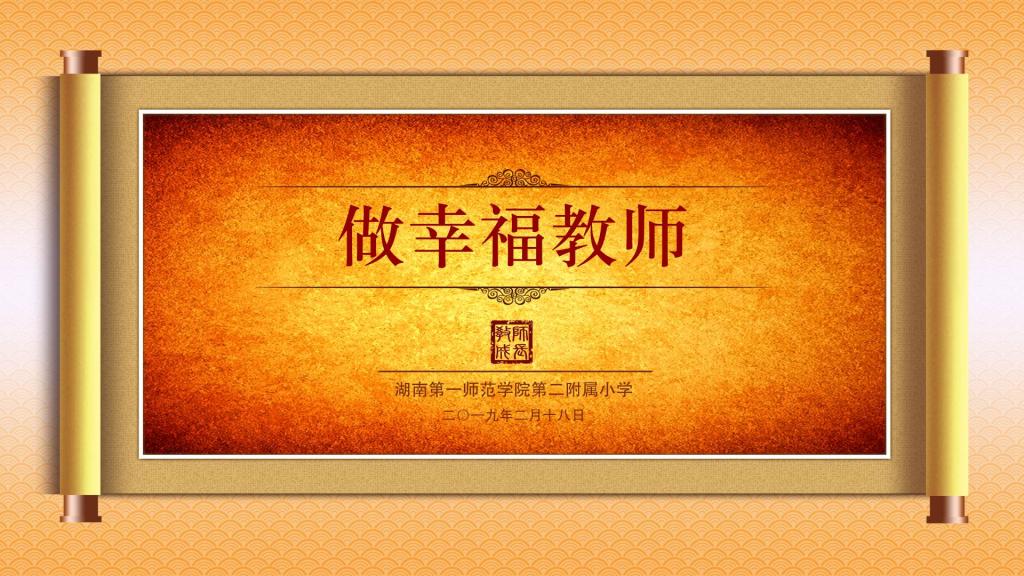 2月18日下午,一师二附小多媒体教室的大屏幕上,神秘而又富有典雅气息的卷轴缓缓展开,深情、富有哲思的寄语次第呈现,悠扬的音乐轻轻流淌,老师们开始了一场特殊的学习之旅——章醇校长带来的润之大讲堂第四讲“做幸福教师”。
