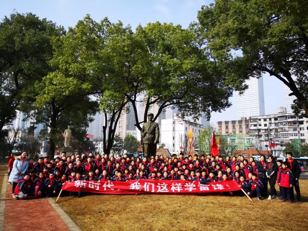 3月4日早晨,五(3)、五(4)中队的队员们在辅导员们的组织下有序地来到长沙市青少年宫开展“新时代,我们这样学雷锋”志愿服务活动。150名师生齐聚在长沙市青少年宫雷锋雕像前,在青少年宫商老师的主持下,通过敬献鲜花、敬礼宣誓表达对雷锋同志的敬意,并用志愿服务活动践行雷锋精神。
