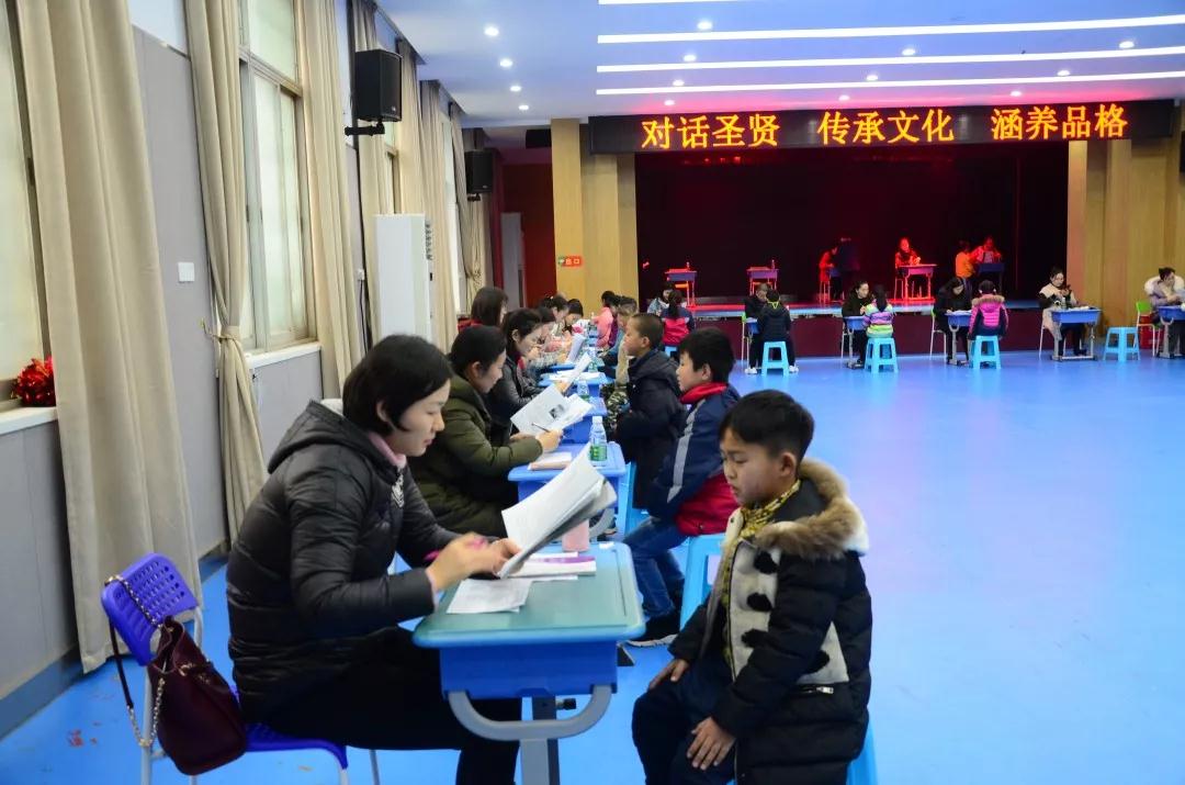 3月5日至8日,每个年级选出了40名家长志愿者考官,在礼堂接受培训后,开始上岗。孩子们在考官们面前自信、大方地接受背诵考核。最后,共有1104人获得二级证书,202人获得一级证书。一部分获得一级证书的孩子表示:还要继续努力,到老师那里换取二级证书。