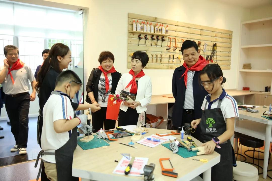 接着,少先队员又引导厅长伯伯一行观看了学校社团的训练:创客编程、围棋实战、机器人超级轨迹训练、小小木工……孩子们动手动脑,在社团活动中发展能力,提升素养。厅长伯伯还现场体验了一把“小木工”活动,孩子们感到更加兴奋、亲切!