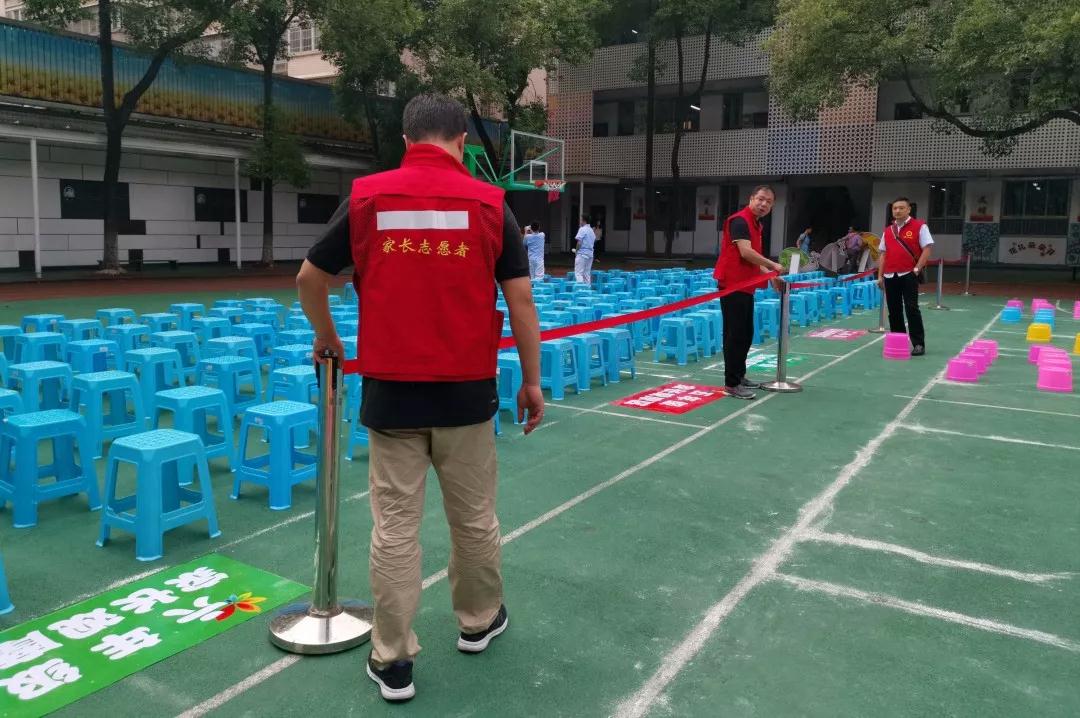 在“六一”庆祝活动期间,校家委会有近30位志愿者主动报名参与服务。在校家委会主任四(3)班康婧怡爸爸的统筹带领下,大家分工合作,井然有序地开展工作。文艺汇演18点30分开始,家长志愿者们17点前就已到岗。