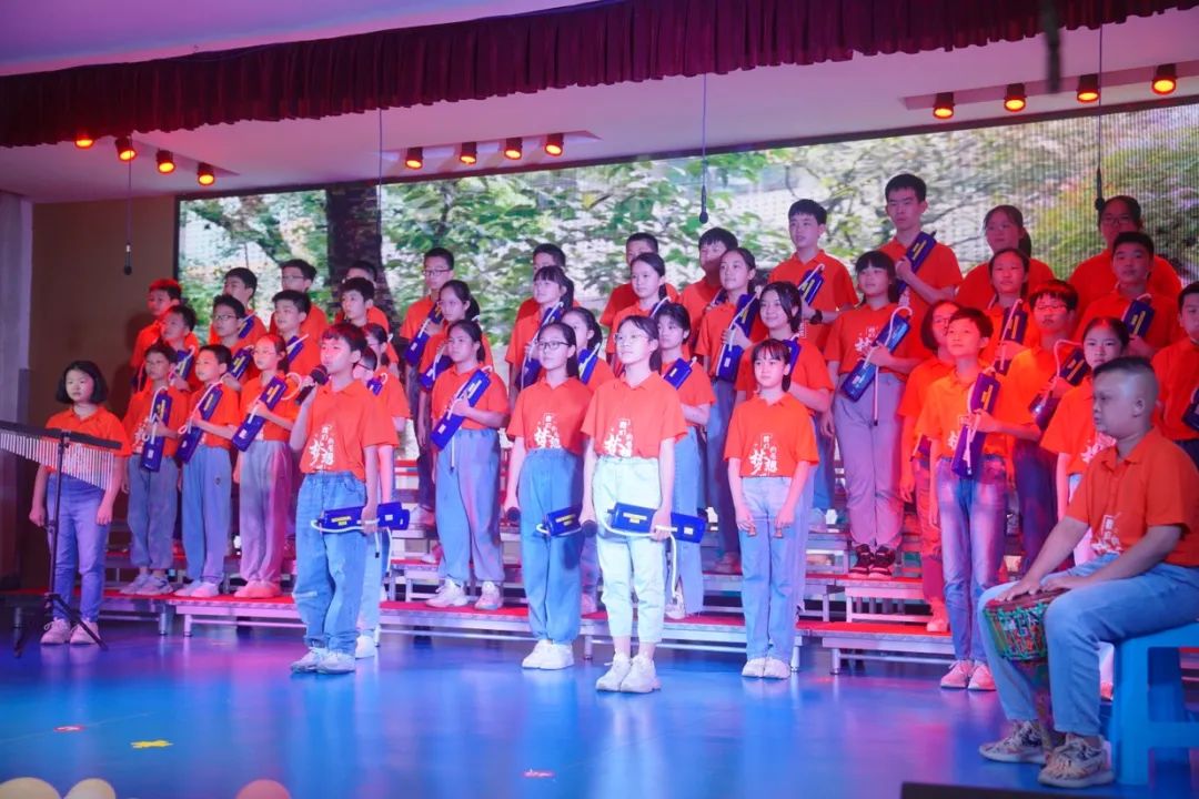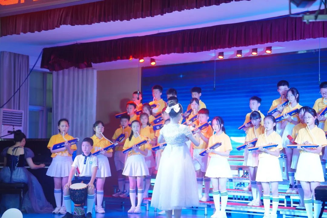 即将毕业的六年级学子为我们带来口风琴合奏。孩子们用口风琴、小提琴、非洲鼓、风铃、古筝、串铃等乐器演奏出《时光里》《彩云追月》《送别》《我的祖国》等脍炙人口的歌曲……他们积极准备,精心排演,阵容整齐,为我们带来了一个个有特色、有回忆、有温度的童年记忆。随着音乐响起,一张张记录着孩子们在校学习生活的照片被老师们用心制作成了成长视频,听之动容,观之流泪。愿你们,心如花木,向阳而生,有梦为马,未来可期!