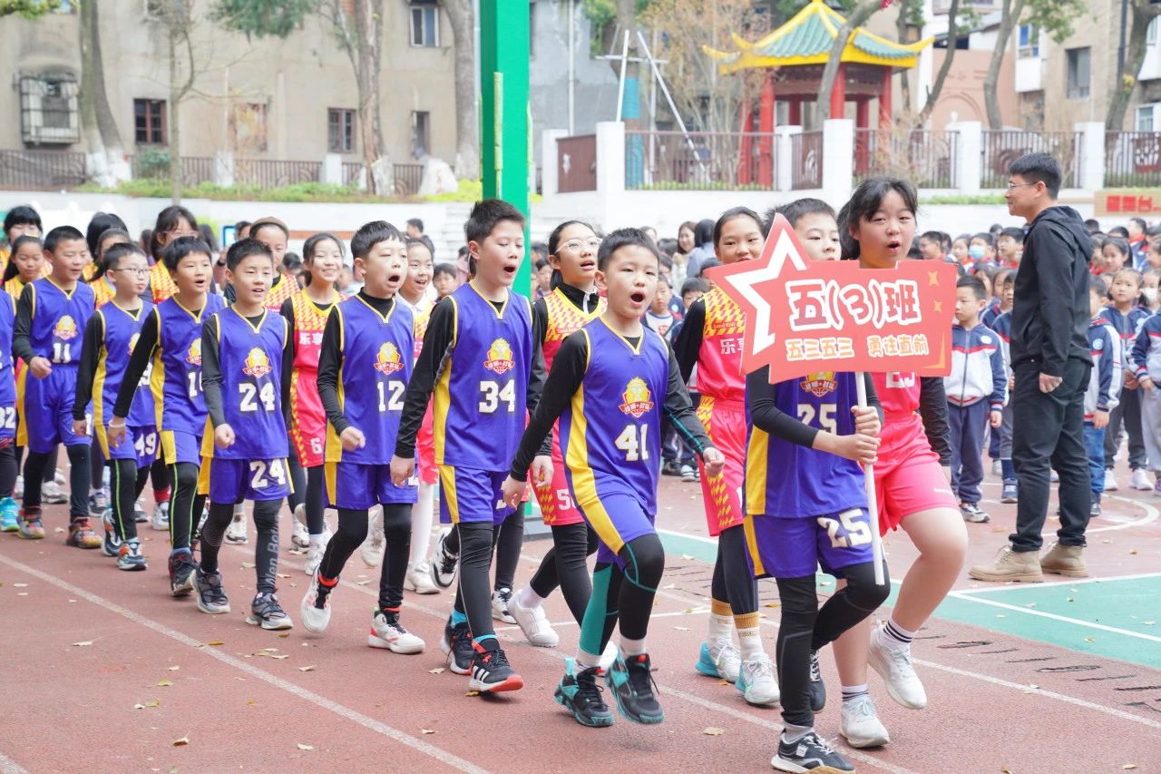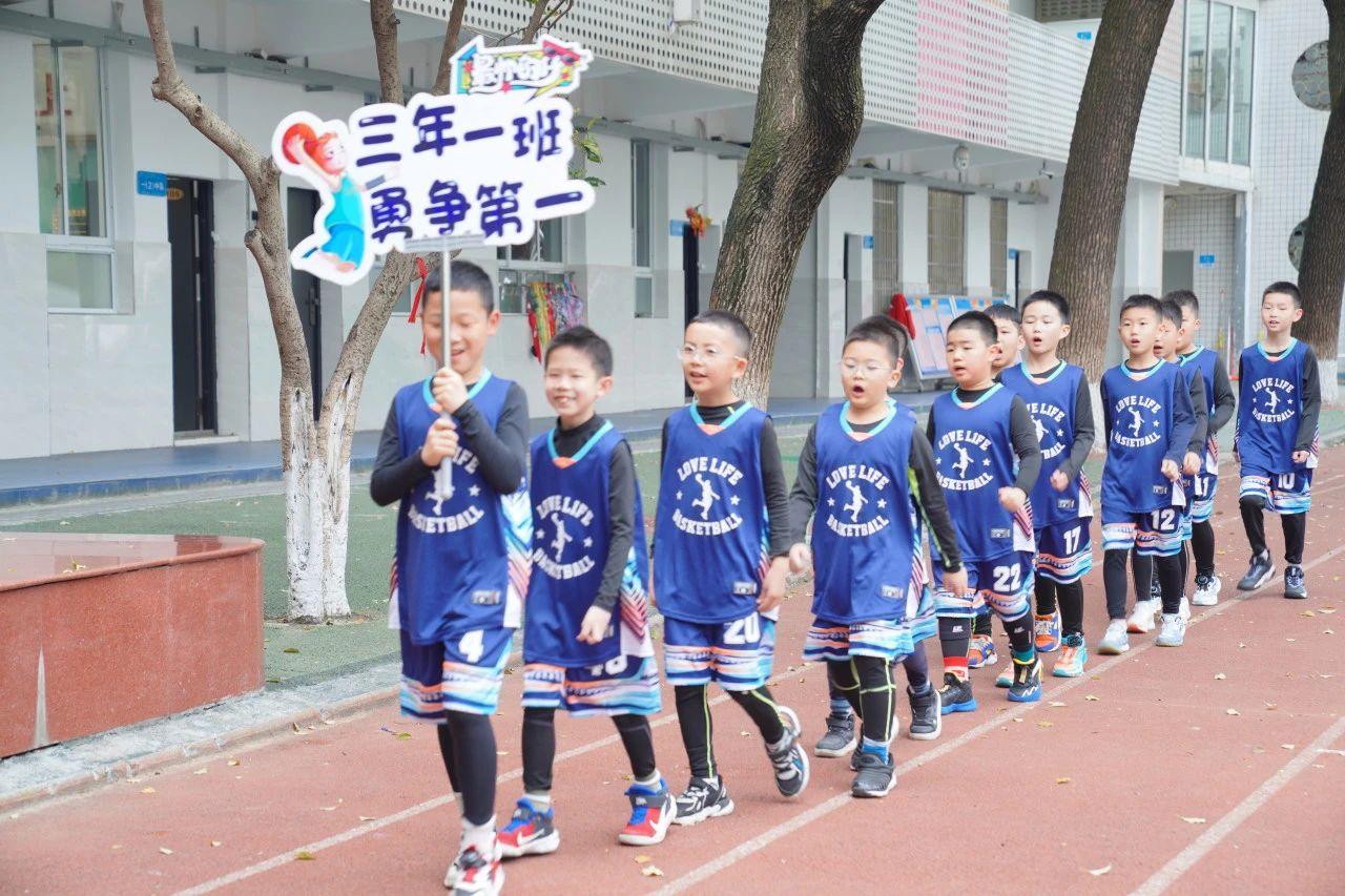 看,各班篮球健儿依次列队步入赛场。他们举着精心设计、个性十足的班牌,喊着嘹亮激昂的口号,精神饱满,步伐坚定,体现出对比赛的热切期待和对胜利的渴望。