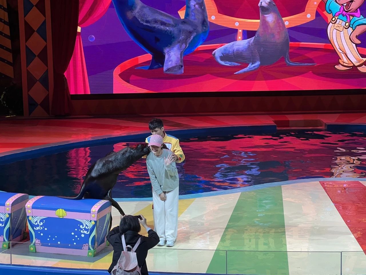 抵达海洋公园后,孩子们首先观赏了海狮赛格的精彩表演。海狮朋友跟大家热情地打招呼,熟练地顶球、倒立,引来了孩子们的阵阵掌声,这场独特体验令他们惊叹着迷,在感叹赛格的聪敏灵活的同时,也激发了他们对海洋世界的探索欲望。