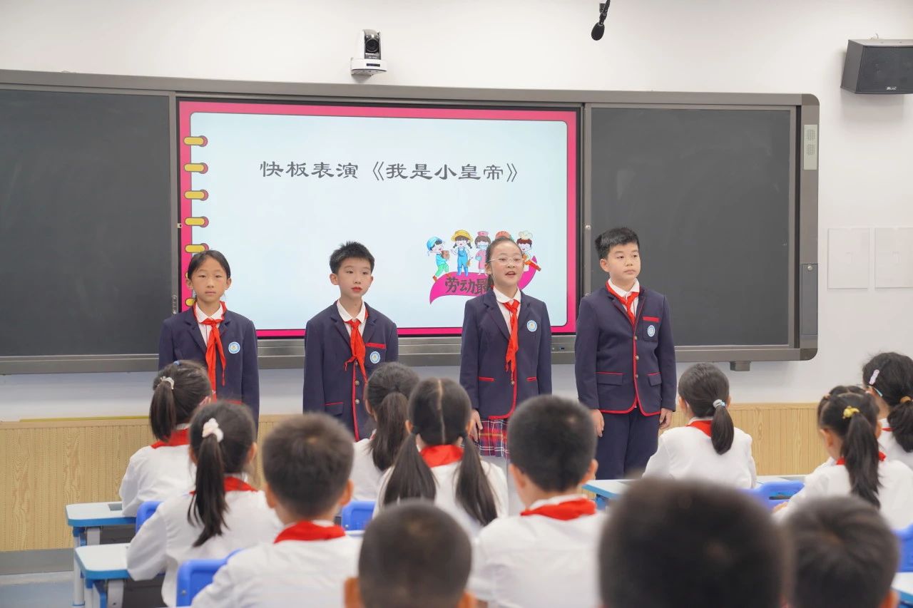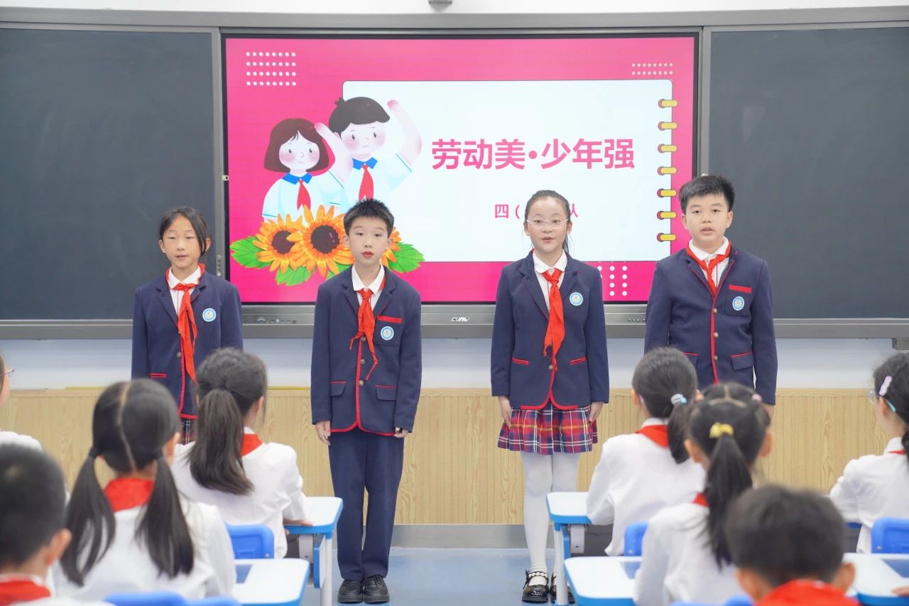 4月29日,四(4)中队开展了以劳动教育为主的国旗下微活动。孩子们以《摇钱树》的故事,生动地阐释了劳动创造财富的真理;快板《我是小皇帝》的演出,展现了劳动的重要性;《劳动拍手歌》则鼓励大家体验劳动的甜美果实。最后,每周一语“勤则寿,逸则天”的宣讲,强调了勤奋对于个人成长和社会进步的不可替代的作用。
