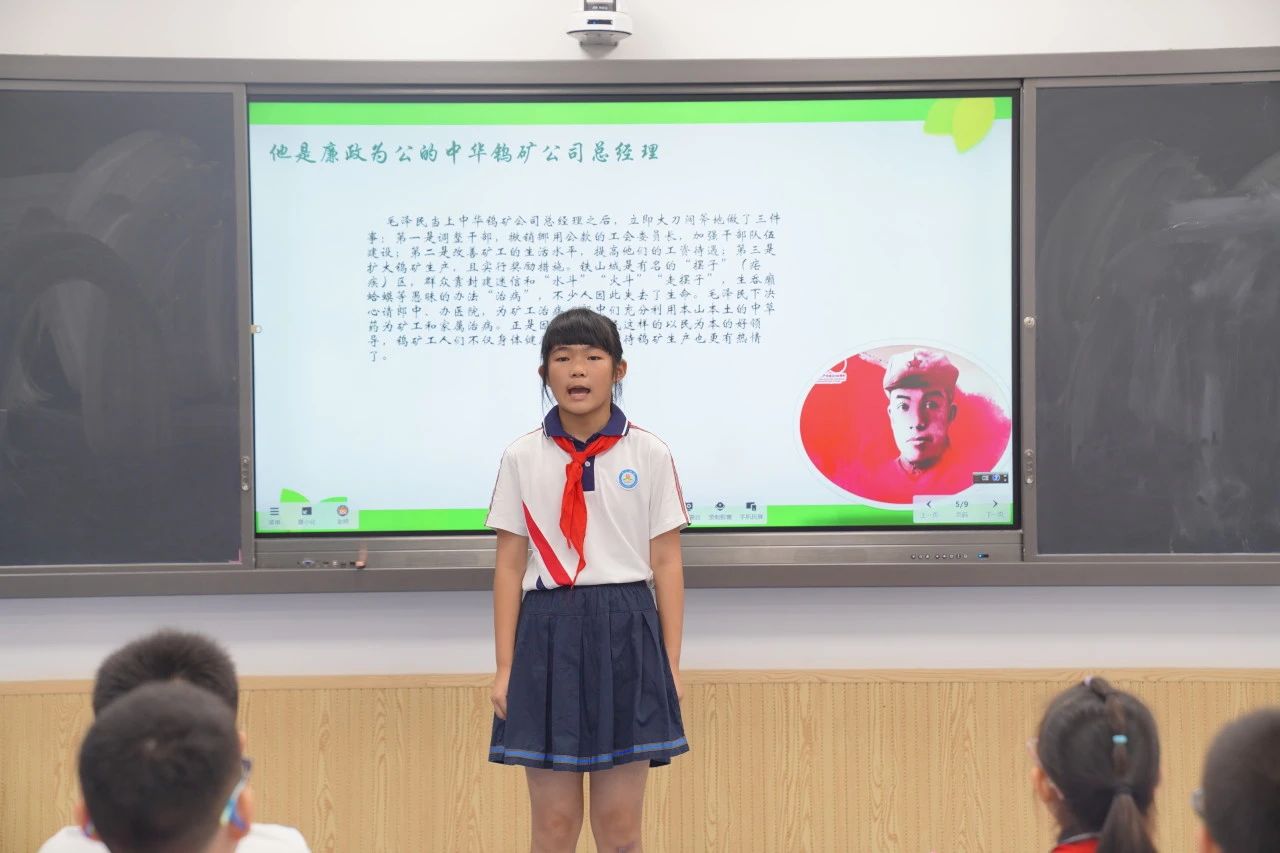 四(1)中队的同学们侃侃而谈“杨老板”的风云事迹,讲述了毛泽民化名“杨杰”,办印刷厂的故事。