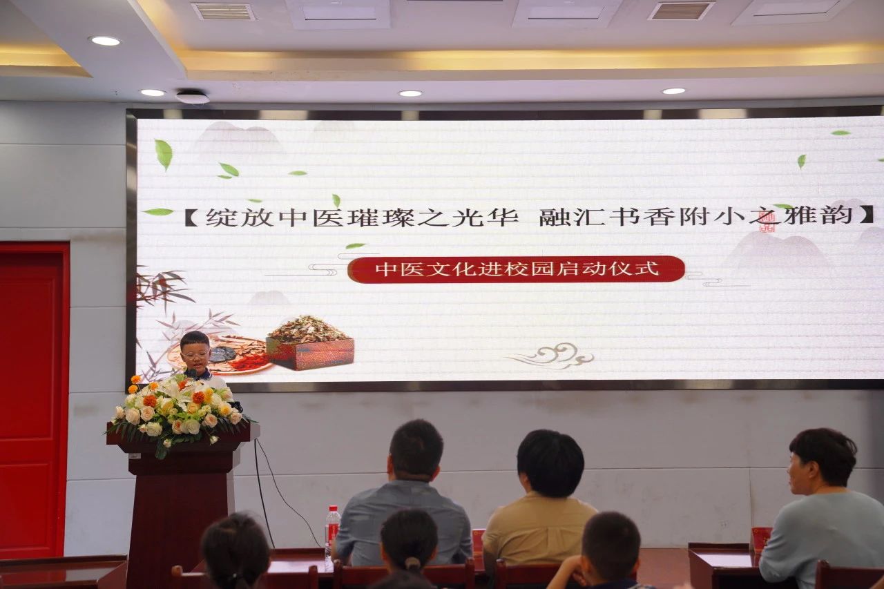 随后,三(3)班滕格林同学作为学生代表发言,“今天我非常兴奋,在我们学校居然能见到中医师,还能上一堂有趣的中医课!”滕格林同学的眼神中闪烁着好奇与期待的光芒,他继续说道,“非常期待任医师和张医师能教我们许多好玩又有用的中医知识!”滕格林同学的发言充满了对中医药文化的热爱与向往,也展现了附小学子积极探索的精神。