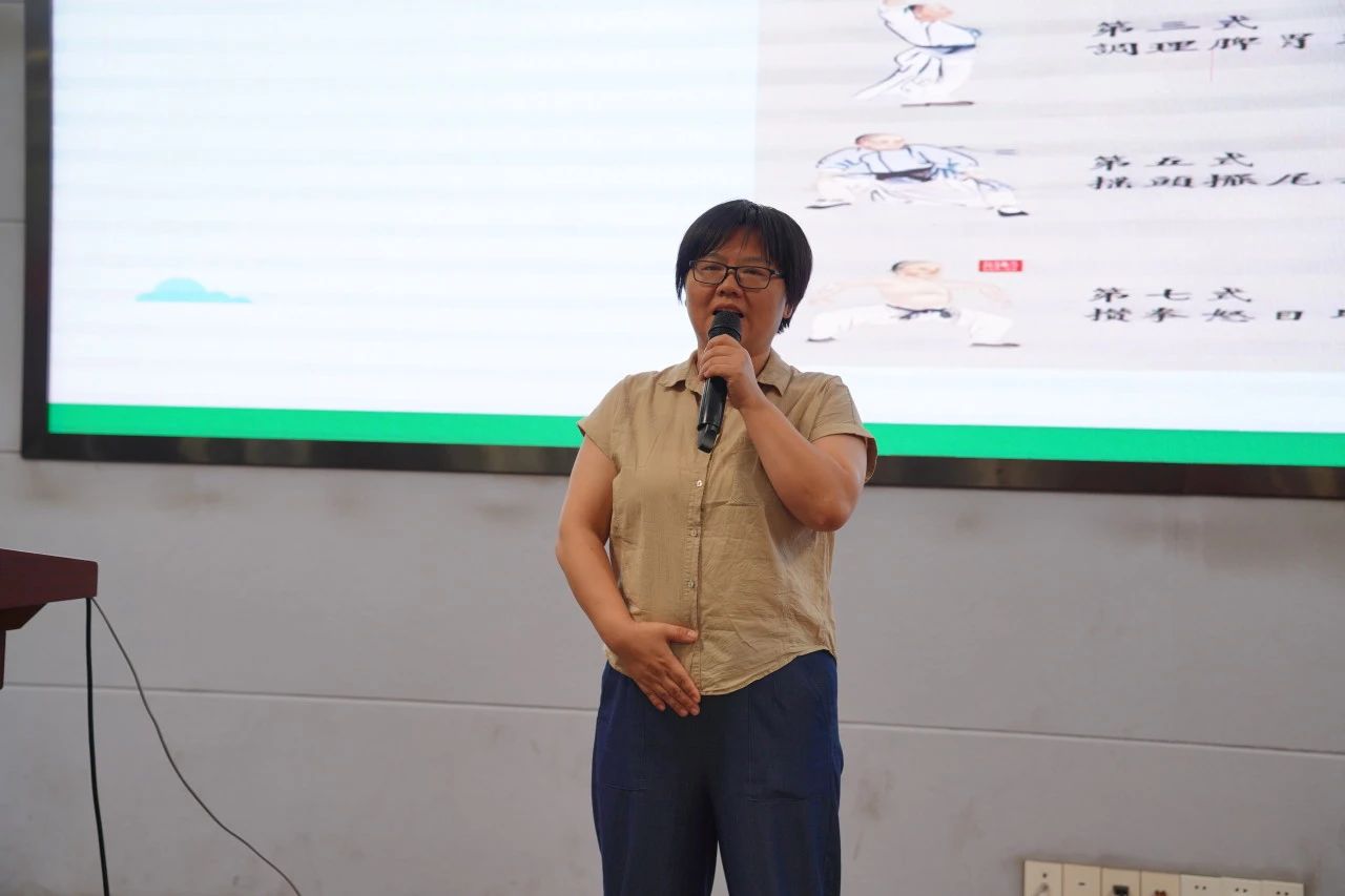 为了让孩子们更直观地感受中医的魅力,任教授还亲自带领大家学习了传统的健身功法——八段锦。她耐心地演示了八段锦的第一节,每一个动作都充满了力量与美感,台下的孩子们跃跃欲试。在任教授的引导下,孩子们不仅学到了中医的知识,更感受到了中医文化的博大精深和独特魅力。