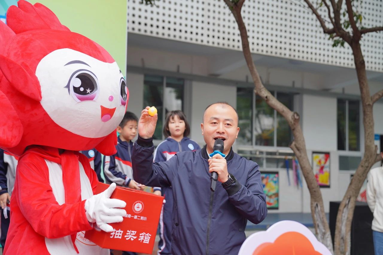随后,吉祥物钥匙扣抽奖环节将发布会推向高潮。汪校长、周校长和山青青、花朵朵共同抽取了每班一名幸运同学,一个个号码次第宣布,孩子们期待、喝彩、欢呼,让这枚吉祥物钥匙扣显得如此独特与珍贵。