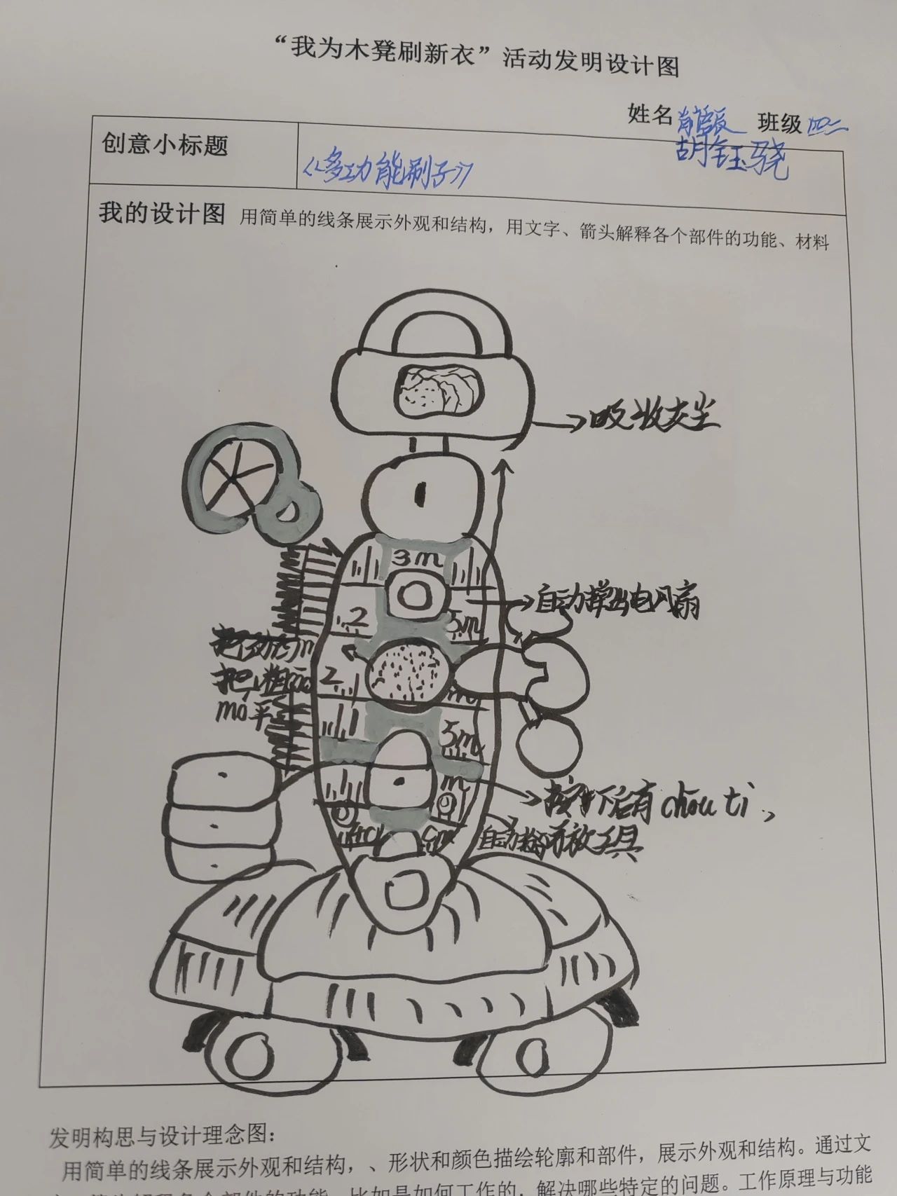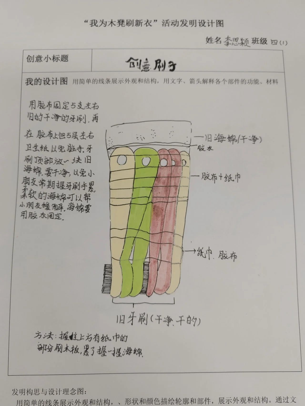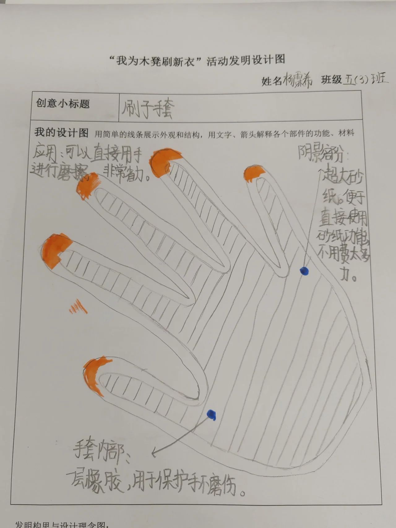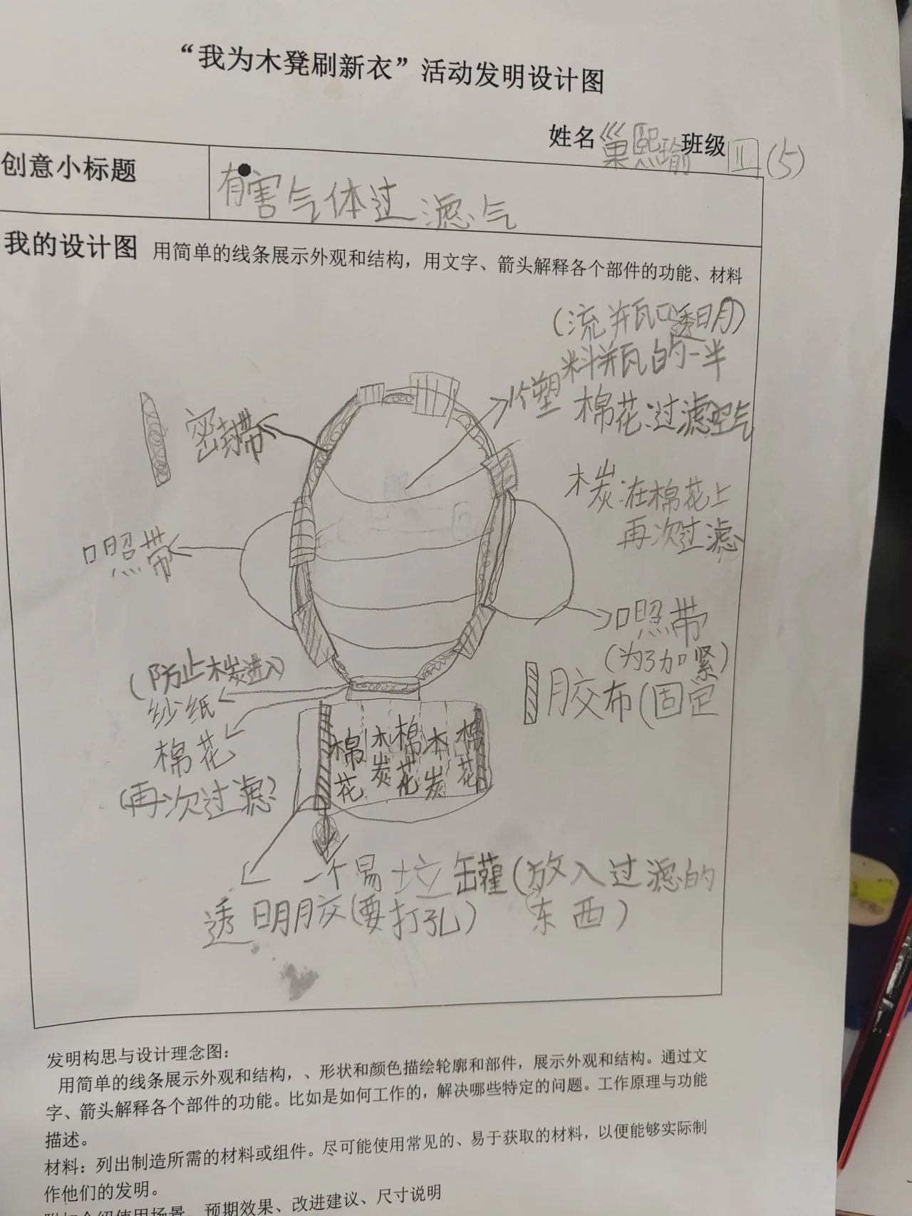 如何为木凳穿上新衣呢?指导老师郭睿创新“工具自制”这一新颖的劳动环节,激发了同学们的参与及创作热情。看,同学们在郭老师的带领下,从方法探究、材料选择、工具准备等方面入手,进行了详细的规划和分工。接着,大家通过查阅资料、请教专家等方式,了解不同涂料的优缺点,选择了既环保又耐用的桐油作为涂刷材料。为了活动的顺利开展,同学们还设计创新了涂刷工具和防臭面具,学习了专业的涂刷技巧。