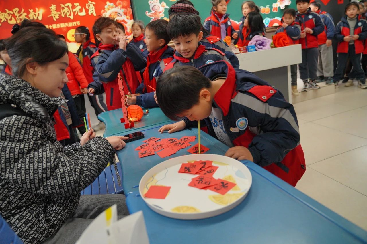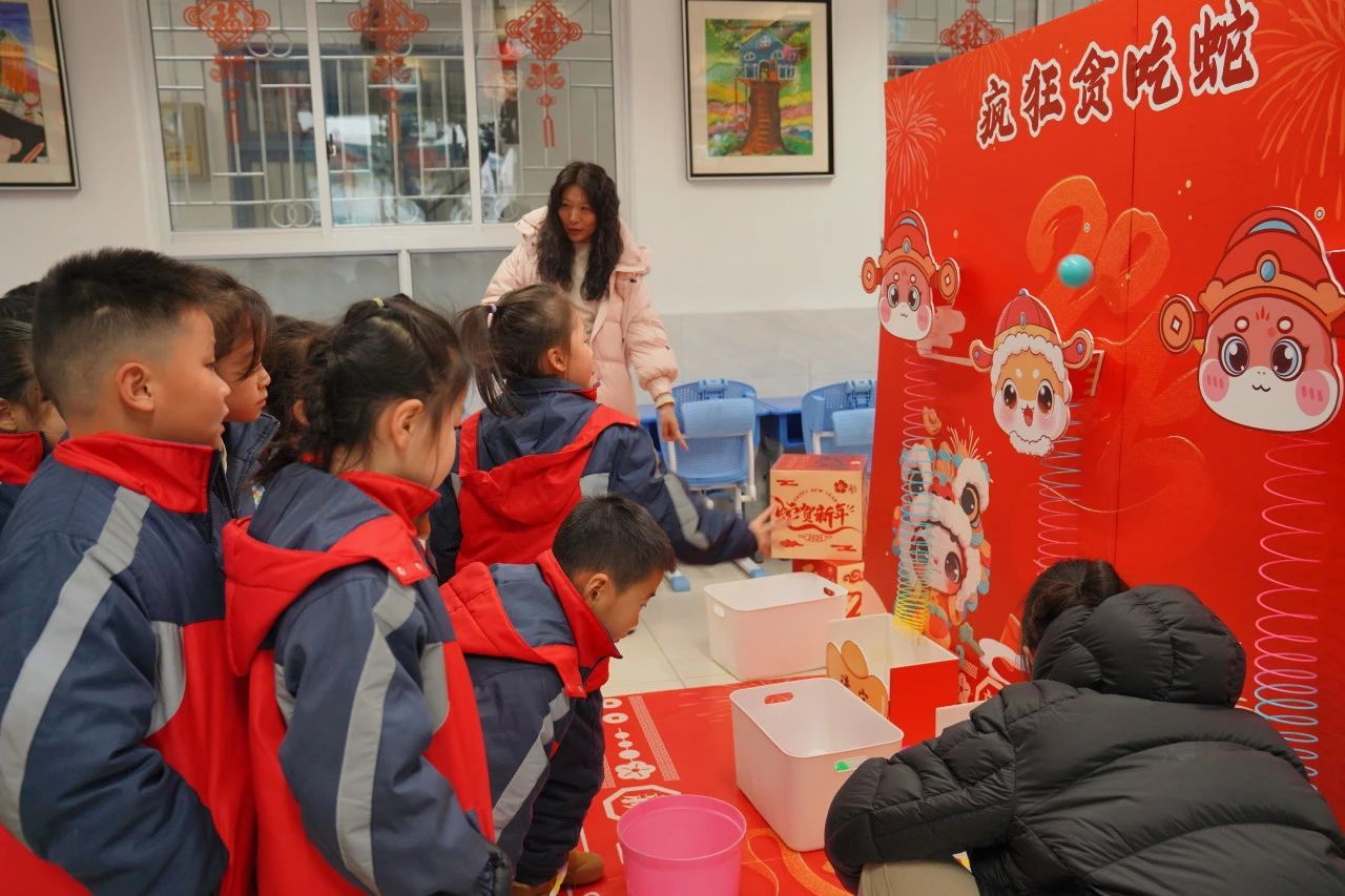 这场别开生面的游戏盛宴处处彰显育人匠心。手工区里,孩子们通过拓印、绘画培养审美创造力;益智游戏中,成语接龙、谜语竞猜激发语言思维火花;团队协作类项目让默契配合取代个人竞技,体育游戏区则通过蛇形障碍赛等设计,将体能训练融入趣味挑战。当元宵主题的"海底捞月"遇上蛇年元素的“福气传递”,传统文化浸润在每一次游戏互动中。