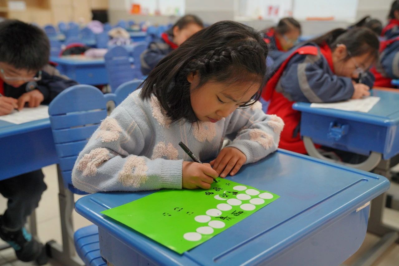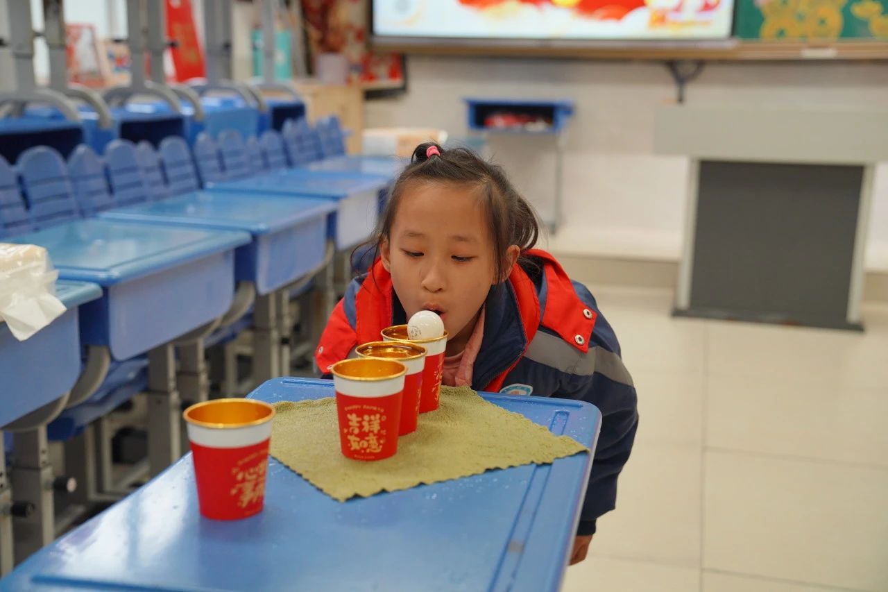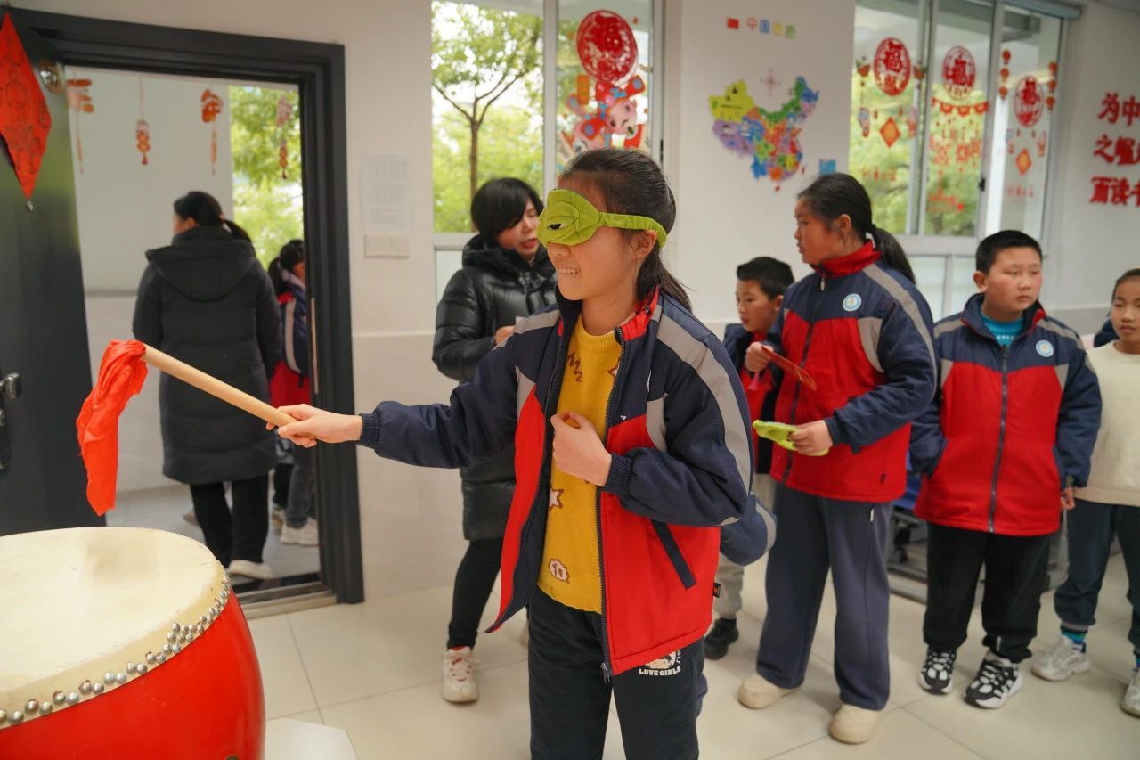 教室里则绽放着传统与现代碰撞的火花:非遗拓印技艺与生肖元素相融合,孩子们用拓印工具定格灵蛇的曼妙姿态;成语接龙与民俗猜谜将传统文化化作趣味挑战;“画蛇点睛”创作区里,稚嫩的画笔为神话故事注入童真想象。现代科技元素同样大放异彩,“贪吃蛇”游戏与实体竞技相映成趣,蒙面敲锣、巧夹元宵等传统游艺焕发新活力。