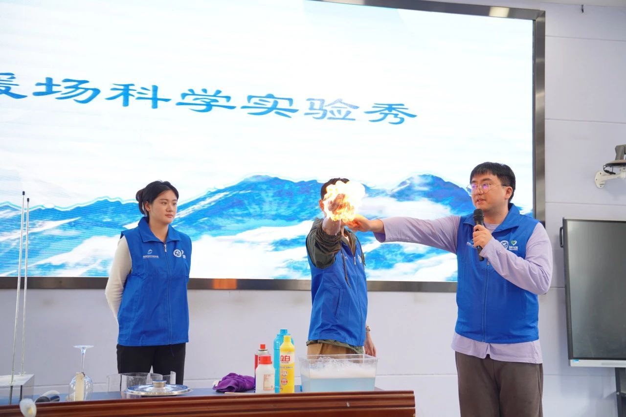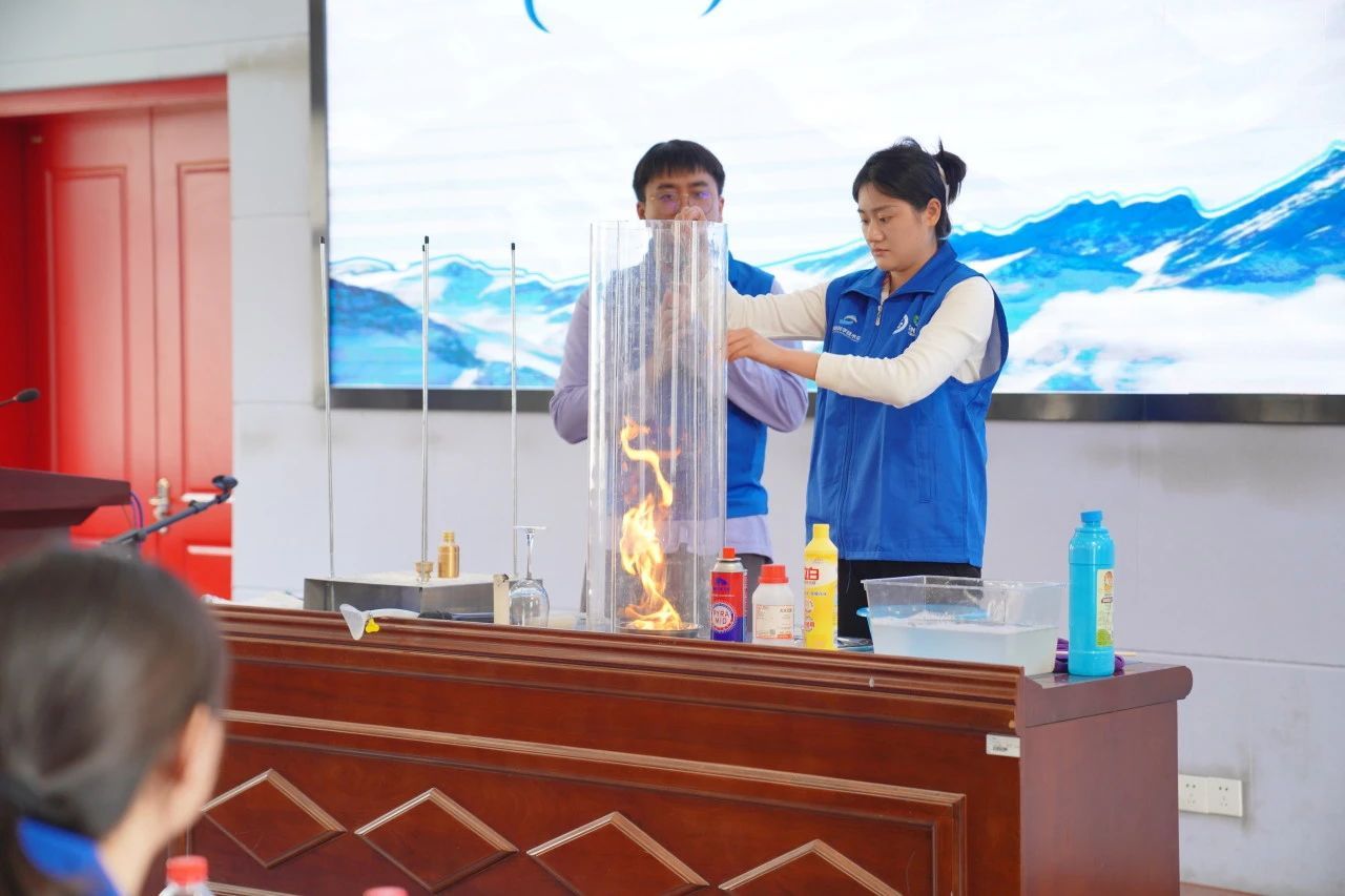 活动以一场精彩的科学实验秀拉开序幕,湖南省科技馆老师郭宸宇、龙异璟通过表演“吹不灭的蜡烛”“火龙卷”“火焰掌”等实验,展示了火的科学本质与安全知识,让学生感受科学的魅力。