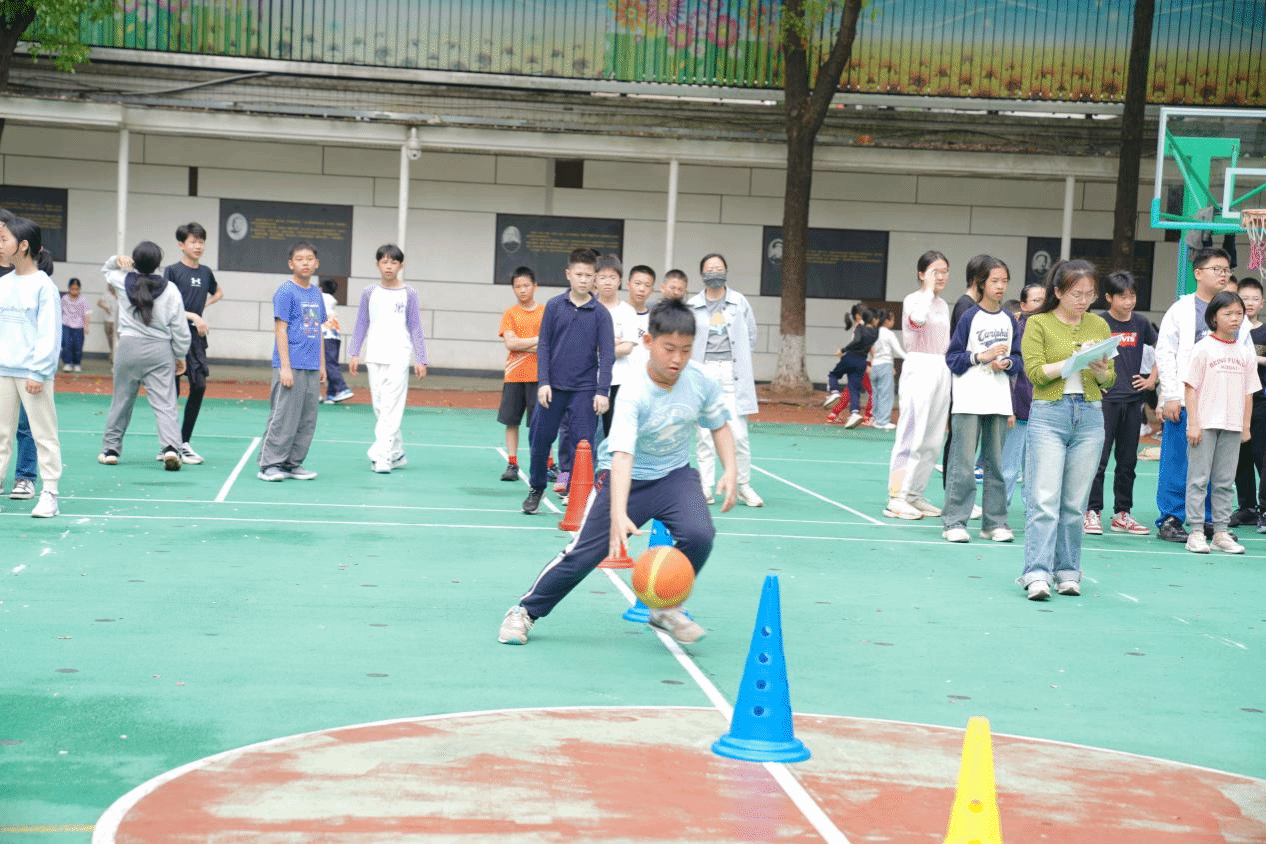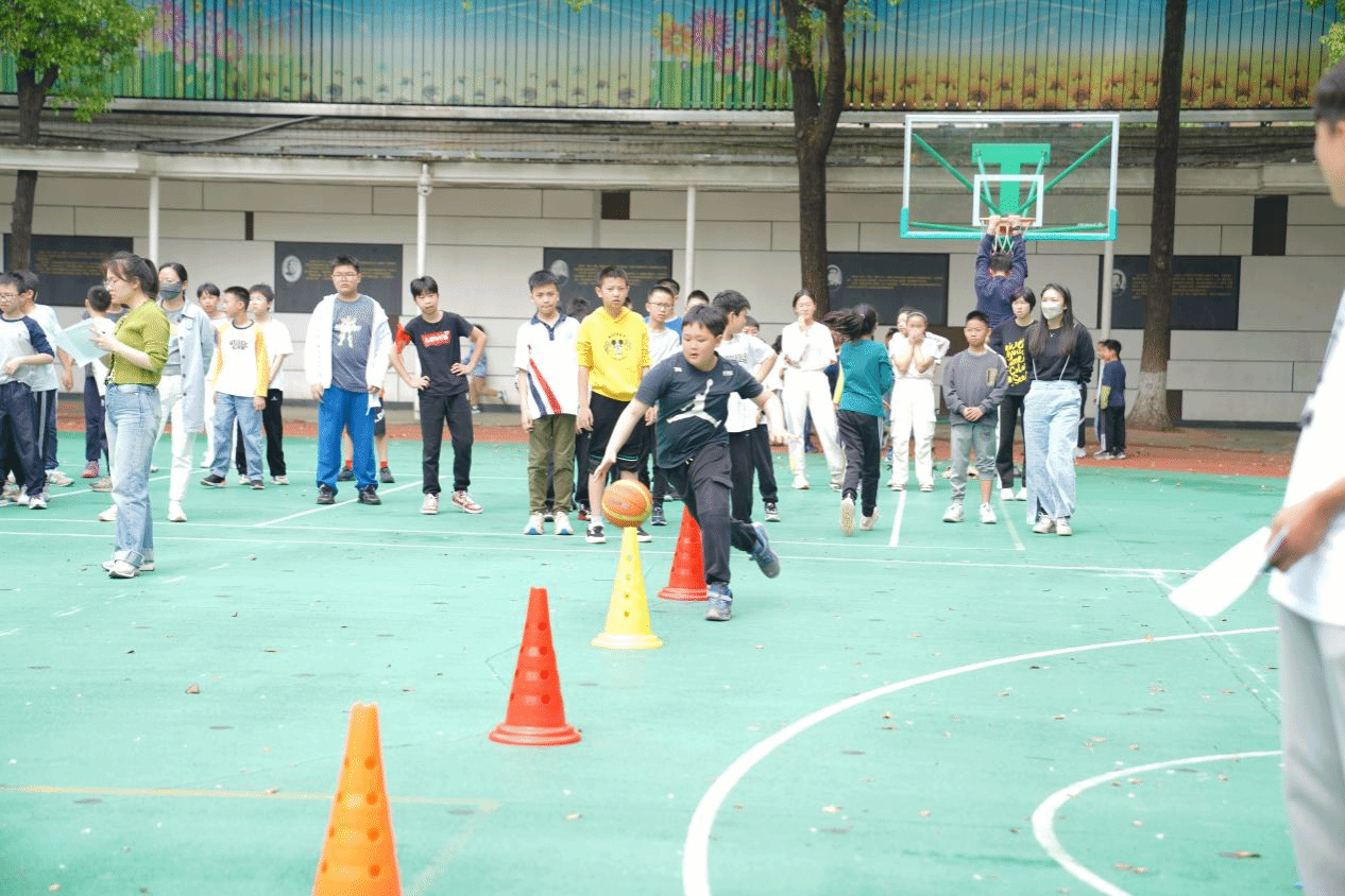 全员参与的运球绕障碍接力比赛将活动推向高潮。参赛选手需要在快速运球的同时灵巧地绕过障碍物,既考验个人技术,又需要团队配合。比赛中,选手们矫健的身影在场地间穿梭,娴熟的运球技巧令人赞叹。交接棒时的紧张刺激,反超时刻的欢呼雀跃,构成了一幅充满活力的运动画卷。