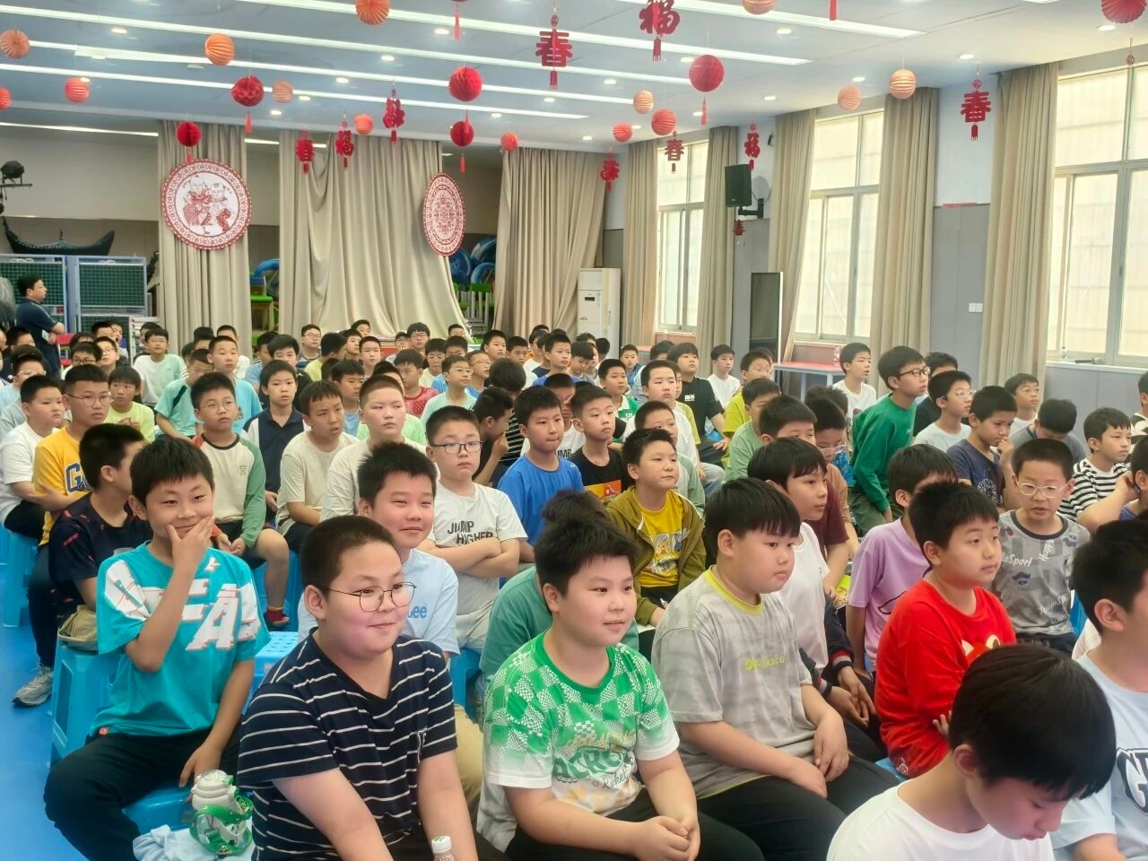 现场发起健康挑战,鼓励学生制定健康作息管理表,减少熬夜,争做自律向上的阳光少年。