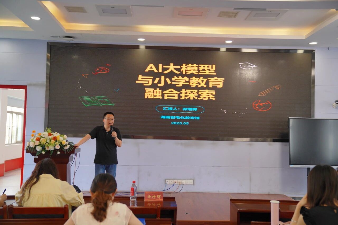 5月19日下午,伟德bv1946官网,伟德国际唯一官网入口迎来了一场充满科技与教育交融的智慧盛宴。湖南省电化教育馆研究室副主任、高级教师徐增晖亲临我校,为全体教师带来了一场题为《AI大模型与小学教育融合探索》的专题讲座,点燃了教师们对于未来教育新图景的无限遐想。