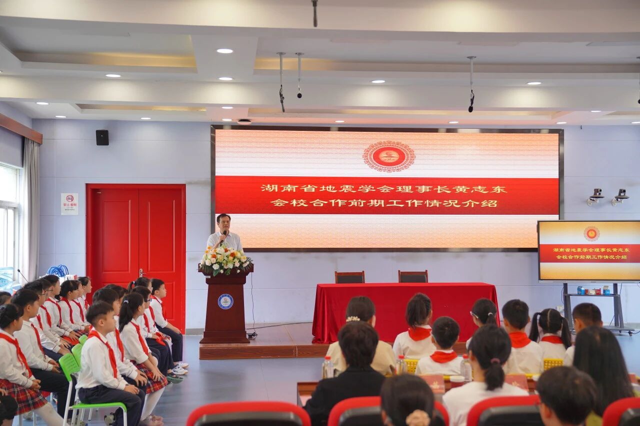 湖南省地震学会理事长黄志东在讲话中指出,学会将通过资源共享、课程开发、应急演练等方式,助力学校提升灾害应对和科普教育能力,并希望打造出“可复制、可推广”的典型经验。