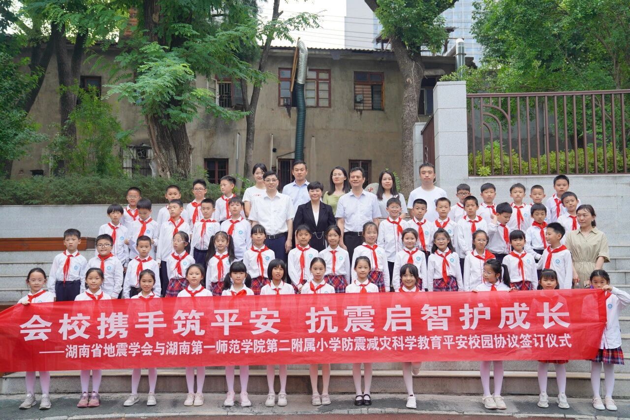 仪式上,湖南省地震学会代表与湖南一师二附小代表正式签署《防震减灾科学教育平安校园框架协议》,标志着双方协同育人机制的建立,开启多层次、多维度的战略合作。