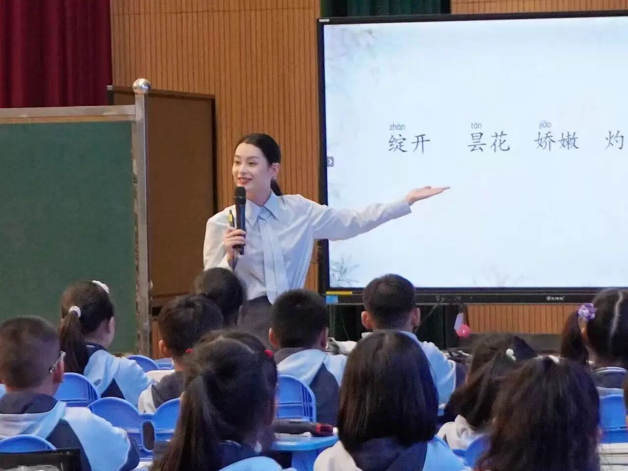 课堂教学展示《花钟》一课,她教学设计精巧,循循善诱,与学生默契互动,尽显教学智慧与课堂魅力。