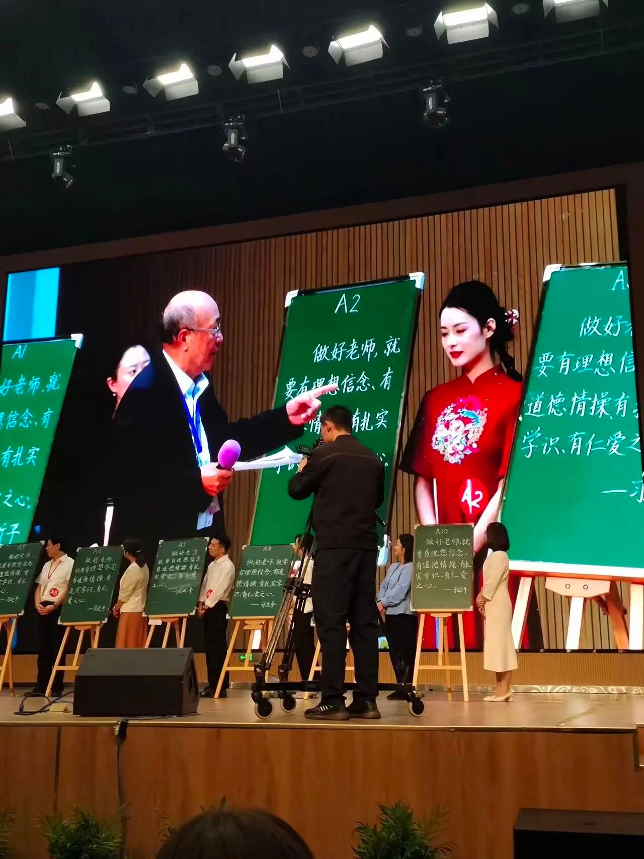 在粉笔字书写环节,她执笔稳健,落笔有神,所书写的“四有好老师”名言字迹工整、结构优美,荣获“书写特长奖”,展现了扎实的书写功底。