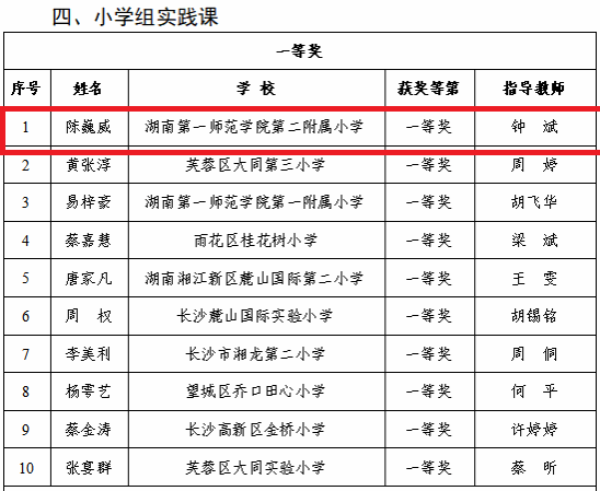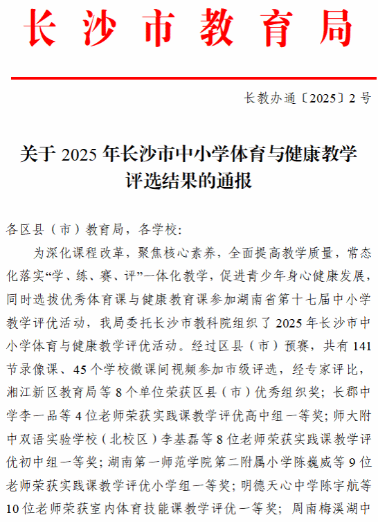 喜讯!我校陈巍威老师的实践课例,荣获长沙市中小学体育与健康教学比赛小学组一等奖第一名!