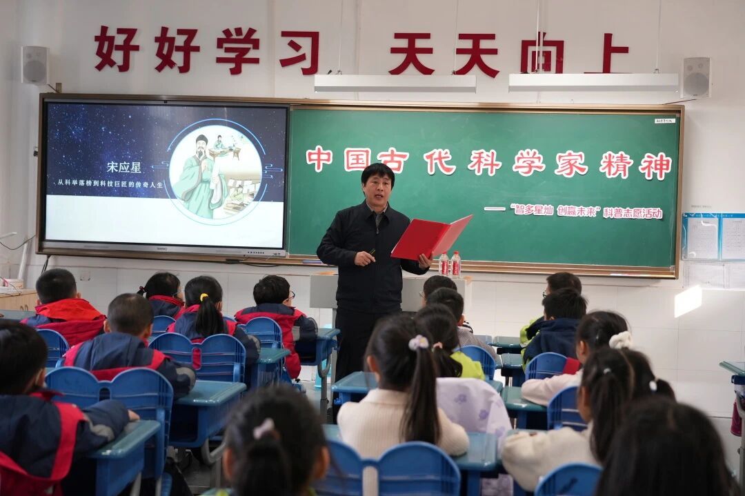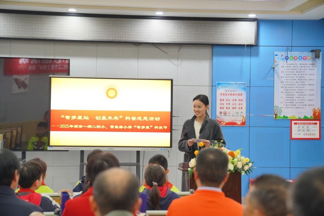 冬阳和煦,探索启航。为了激发学生对科学探究的兴趣,拓宽科学视野,弘扬古代科学家的探索精神与家国情怀,12月8日下午,湖南一师二附小营盘路校区洋溢着浓厚的科学氛围,“智多星灿,创赢未来”科普志愿活动在多媒体教室隆重举行。本次活动作为学校第二十三届“智多星”科技节的重要篇章,旨在通过多元科普体验,在学生心中播撒科学的种子,弘扬志愿精神,营造“爱科学、学科学、用科学”的校园文化。