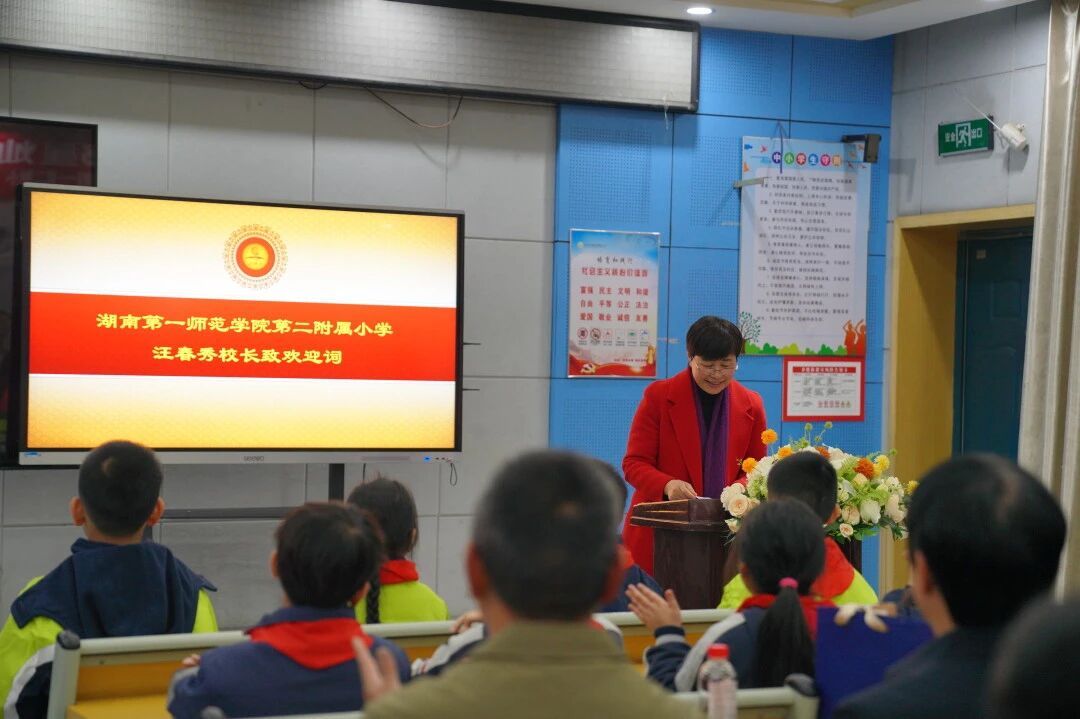 湖南一师二附小校长汪春秀首先致欢迎辞,她对各位专家、志愿者的到来表示诚挚感谢,并寄语同学们珍惜机会、主动探索求知,让科学精神照亮成长之路。
