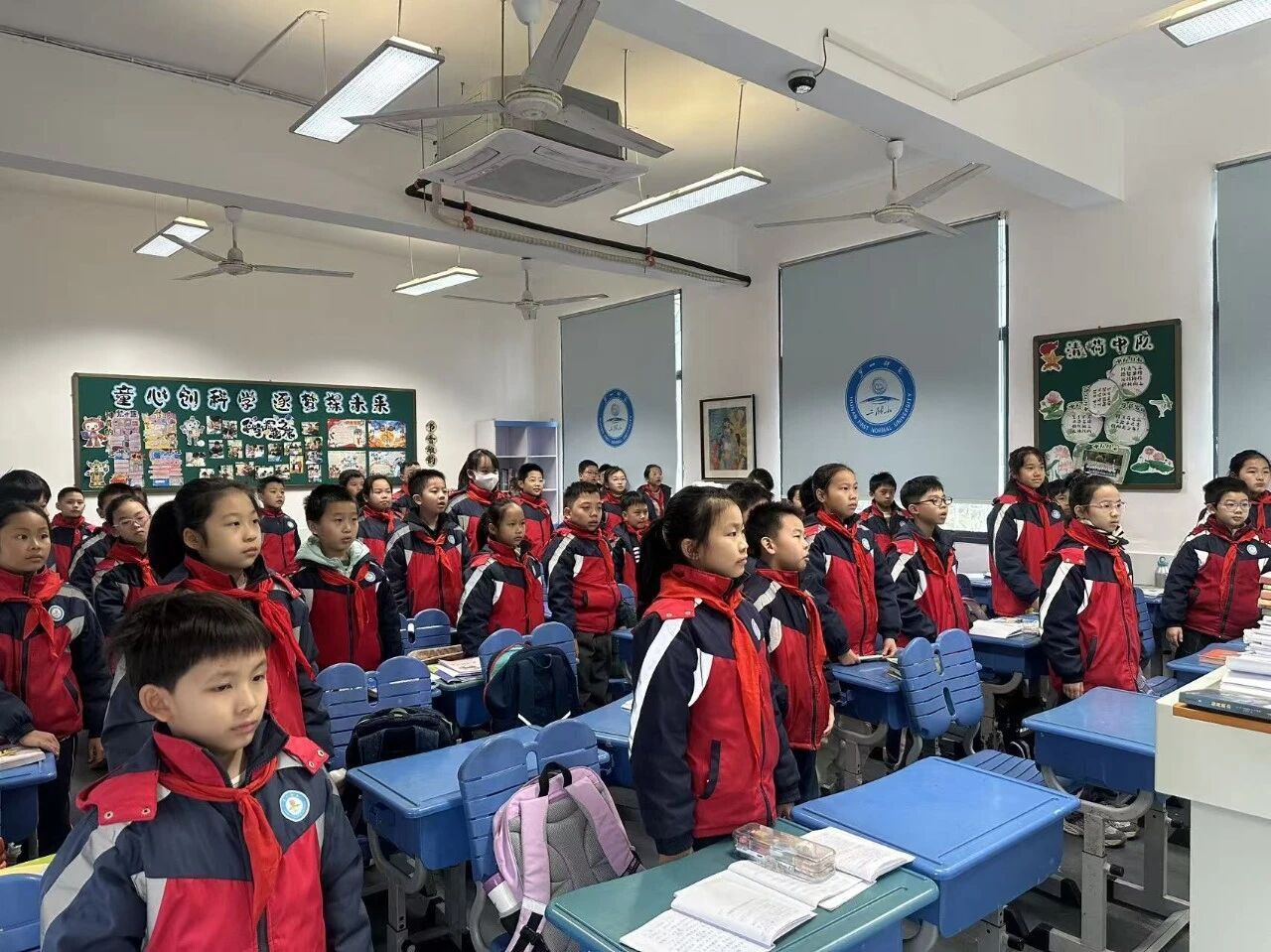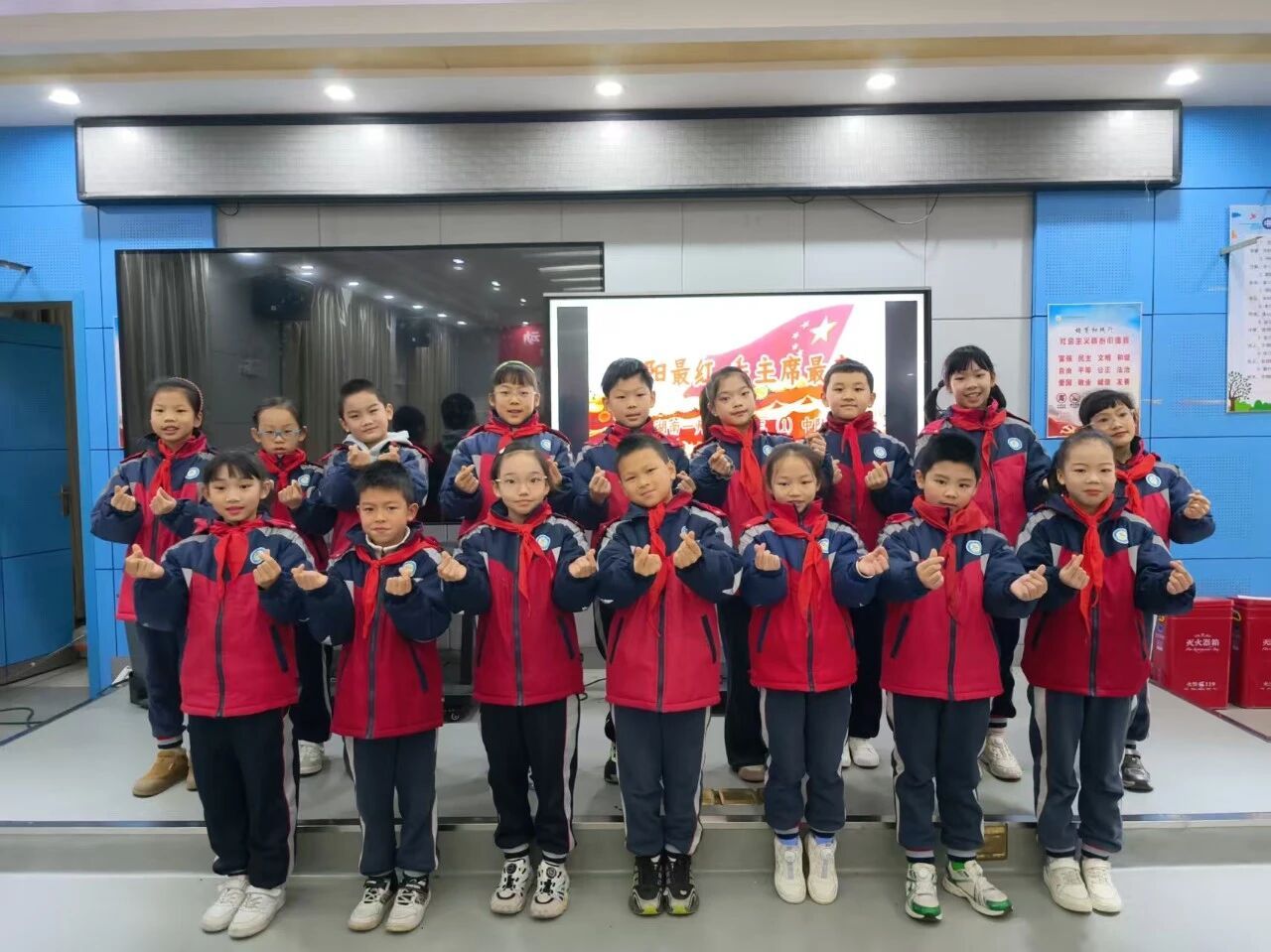 仪式的高潮部分,欧阳吉灏等四位同学共同讲述了《毛主席与附小的故事》。他们回顾了毛泽东同志在附小担任主事期间推行教育革新、传播进步思想、关心工农子弟、倡导劳动教育的办学实践,特别提到毛主席曾写下“世界是我们的,做事要大家来”的楹联,至今仍是我校精神血脉的重要组成部分。1921年,毛泽东同志正是从附小出发,赴上海参加中共一大,从此开启了中国革命的崭新篇章。这段厚重的校史让全体师生深感自豪,更觉责任在肩。