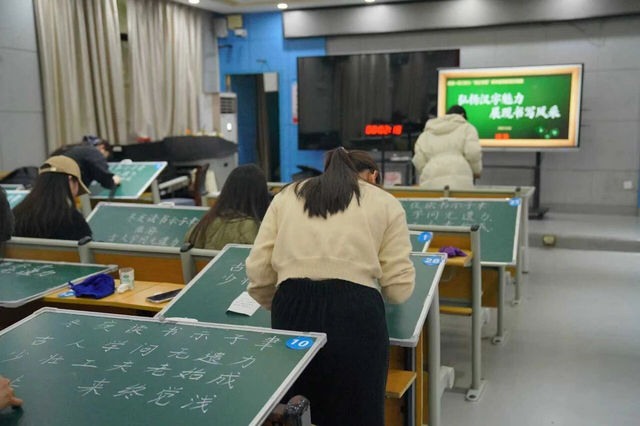 粉笔作笔,黑板为纸,一横一竖皆是风骨,一撇一捺尽显师心。为进一步夯实青年教师教学基本功,提升教师专业能力,12月22日下午,湖南一师二附小成功举办2025年度青年教师粉笔字竞赛。本次活动以“弘扬汉字魅力,展现书写风采”为主题,润之学堂青年教师积极参与其中,以笔为媒,以字传情,在黑板上书写教育匠心。