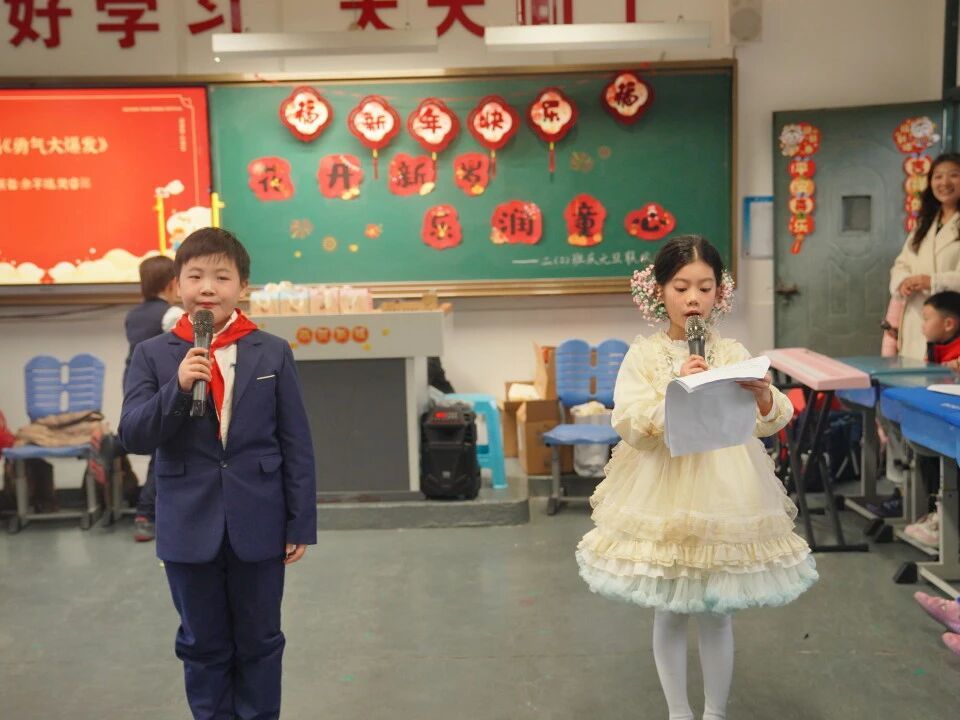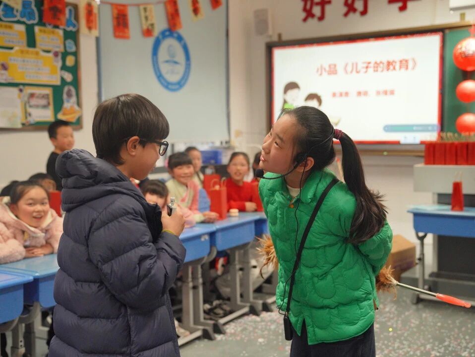 联欢活动在热烈的掌声中拉开帷幕。各班节目精彩纷呈,创意涌动:声情并茂的诗歌朗诵、轻盈优美的舞蹈、幽默风趣的课本剧、悠扬的器乐合奏、清澈纯真的合唱,以及变幻莫测的魔术表演相继登场。孩子们自信登台,展现才艺,用纯真的表演诠释着“花开”的朝气与“童心”的烂漫。笑声、歌声、喝彩声交织成一片欢乐的海洋,每间教室都化身为艺术的殿堂、快乐的港湾。