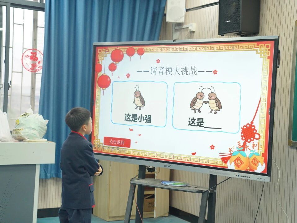 节目表演间隙,各班还组织了形式多样的互动游戏:“你画我猜”“正话反做”“合作送福”……孩子们在游戏中团结协作、开动脑筋,既体验到了竞争的乐趣,也感受到了集体的温暖。教师们也积极参与其中,与孩子们同玩同乐,师生情谊在欢声笑语中不断升温,童心在游戏中悄然滋养,课堂内外洋溢着融融暖意。