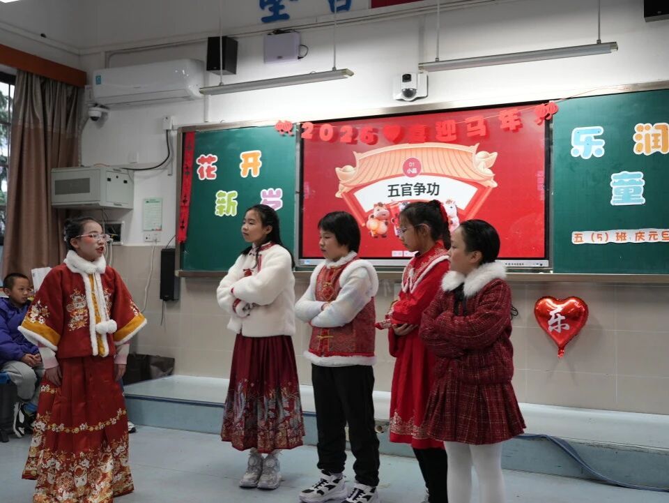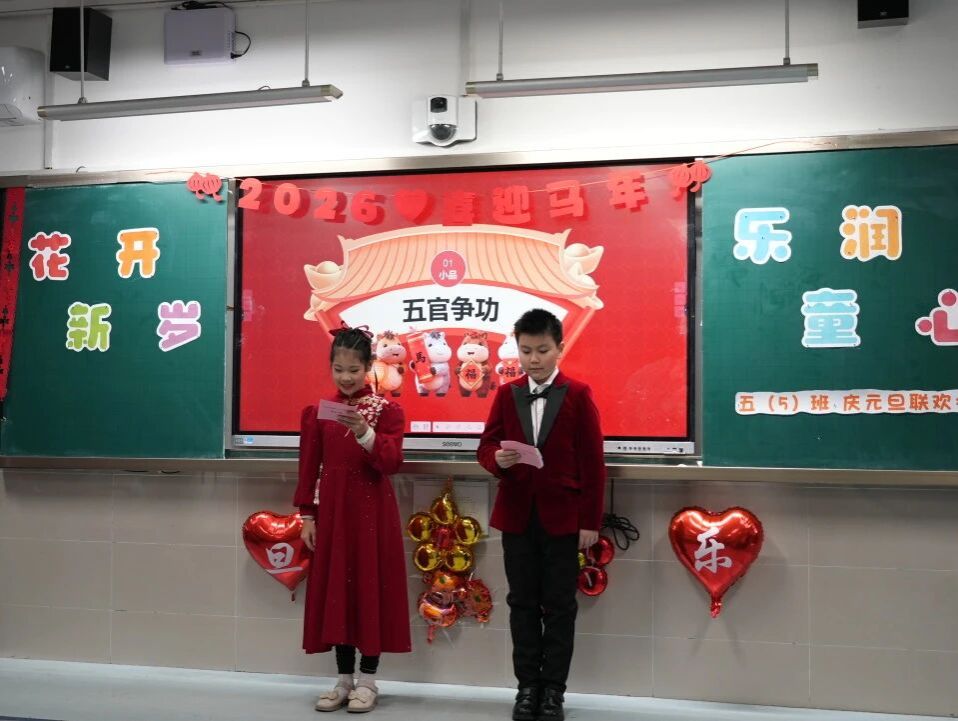 岁序更替,华章日新。为迎接2026年元旦,营造欢乐向上、温暖有序的校园氛围,12月31日我校以班级为单位开展“花开新岁,乐润童心”主题联欢活动。活动通过才艺展示与趣味游戏,为学生提供展示与交流的平台,让同学们在集体参与中收获快乐、拥抱希望。
