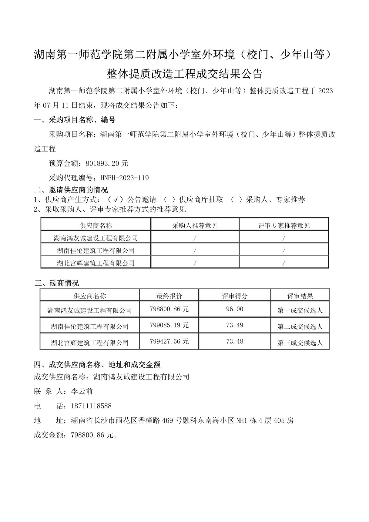 伟德bv1946官网,伟德国际唯一官网入口室外环境(校门、少年山等)整体提质改造工程成交结果公告