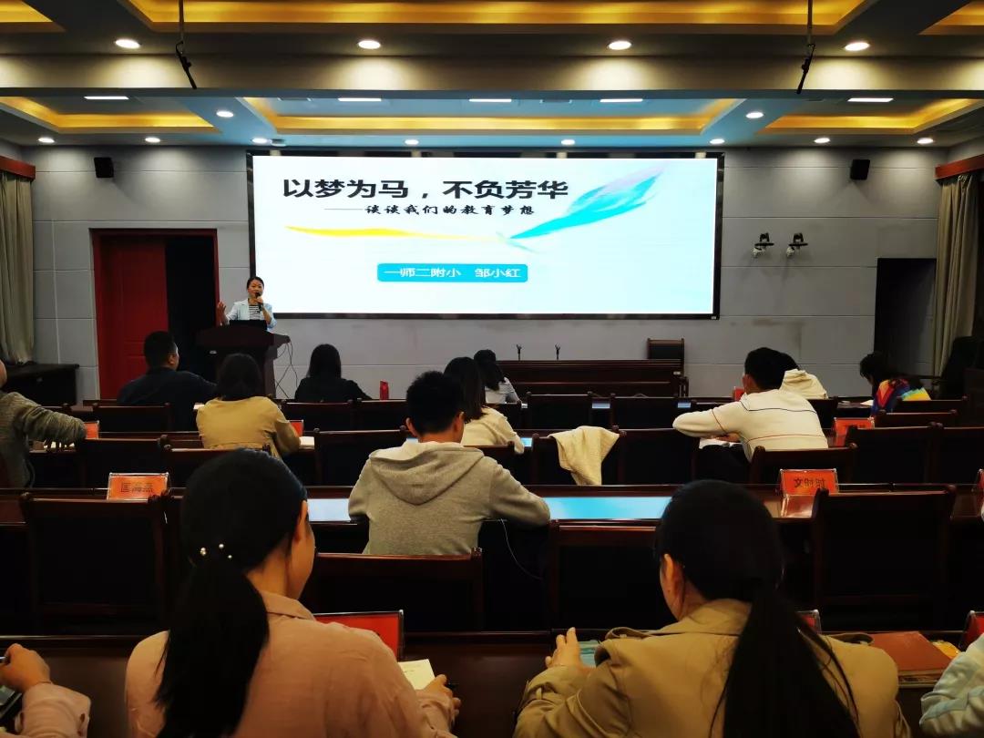 10月24号晚,忙碌了一天的二附小青年教师相约学校多媒体教室,开始今天的“润之学堂”学习——教研室邹小红主任分享题为“以梦为马,不负芳华——谈谈我们的教育梦想”的讲座。