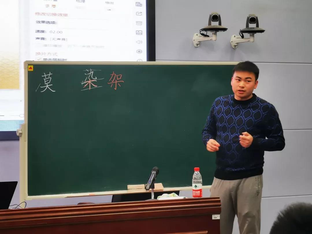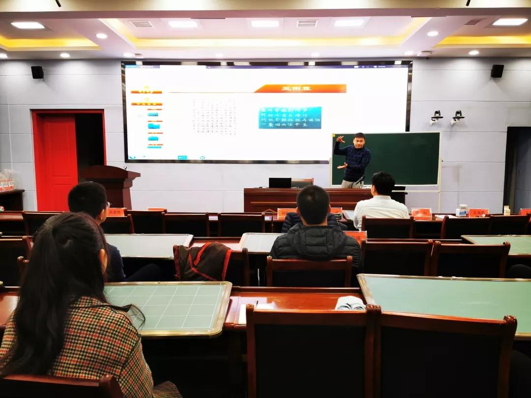 11月21日晚,青年教师们卸下一天工作的疲惫,携上高涨的学习热情,与“润之学堂”第五讲如期而遇。今晚,优秀的青年书法才俊——易万喜老师给我们带来了一堂“两笔字”书写课。