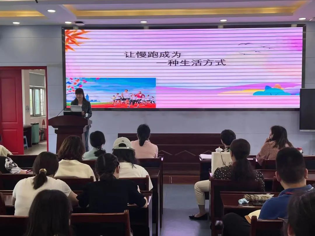 著名的思想家柏拉图说过:身体教育和知识教育之间必须保持平衡。体育应造就体格健壮的勇士,并且使健全的精神寓于健全的体格。毛主席也曾提出“文明其精神,野蛮其体魄”的号召。5月8日下午,二附小全体教师相约润之微讲堂,可敬可佩的罗永华老师以“让慢跑成为一种生活方式”为题,为老师们讲述了慢跑的重要性。