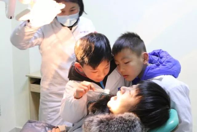 来到医院,孩子们迫不及待地换上小小白大褂,转身变成帅气、大方的小牙医。