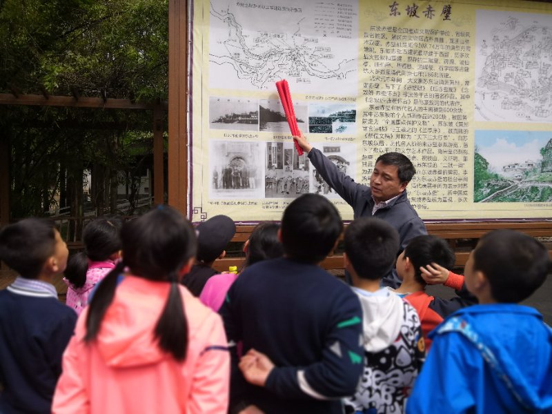 东坡赤壁又名文赤壁,因苏轼的《念奴娇 赤壁怀古》、《前赤壁赋》、《后赤壁赋》闻名。我们来到池东空地,映入眼帘的是一尊高大的白色苏轼全身立像,面对大江长天,衣裳飘逸,凝神伫立。接着我们参观了二赋堂、酹江亭、坡仙亭等,里面有苏轼、黄兴、郭凤仪等名人的书法和石刻作品。欣赏着这些作品,让我们大开眼界,感受到了浓厚的文化气息。