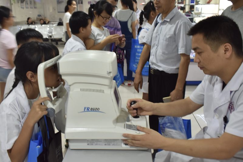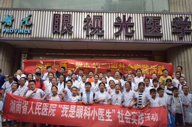 8月9日下午两点半,湖南一师二附小六(2)班的同学们准时来到湖南省人民医院视光学中心参加“我是眼科小医生”的社会实践活动。医院给每位小朋友贴心地准备了小白大褂、笔、本子和小礼物。活动分为三部分。
